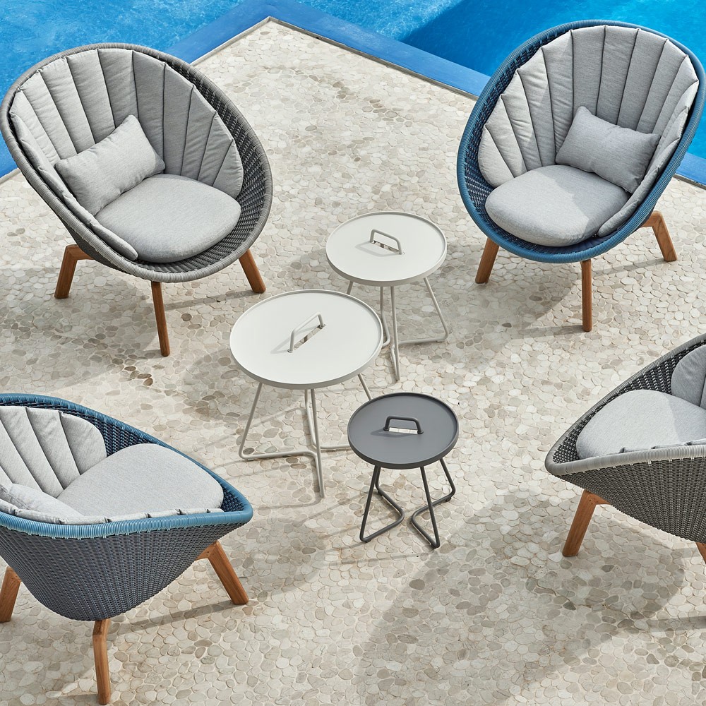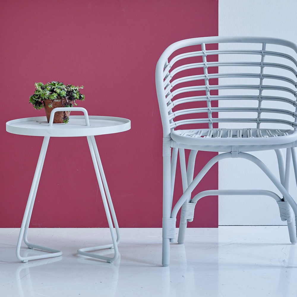 This lightweight and elegant side table is the result of an exciting design process. The idea behind the design was to create a multifunctional side table with a loose tray. Equipped with a handle so you easily can move the table around as needed. On the move countertop is a removable plate that can transform the table from a beautiful side table into a convenient serving tray in no time. And easy to grap handle secures that the One the move table can be moved indoors after use. The side table is made in 100% aluminium thus it is designed to All-year usage outdoor.