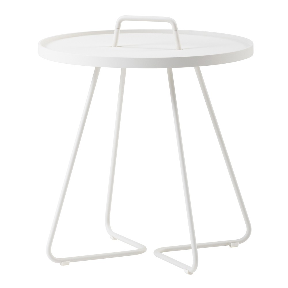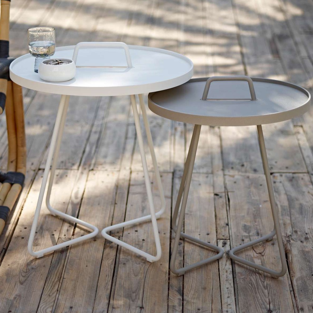 This lightweight and elegant side table is the result of an exciting design process. The idea behind the design was to create a multifunctional side table with a loose tray. Equipped with a handle so you easily can move the table around as needed. On the move countertop is a removable plate that can transform the table from a beautiful side table into a convenient serving tray in no time. And easy to grap handle secures that the One the move table can be moved indoors after use. The side table is made in 100% aluminium thus it is designed to All-year usage outdoor.