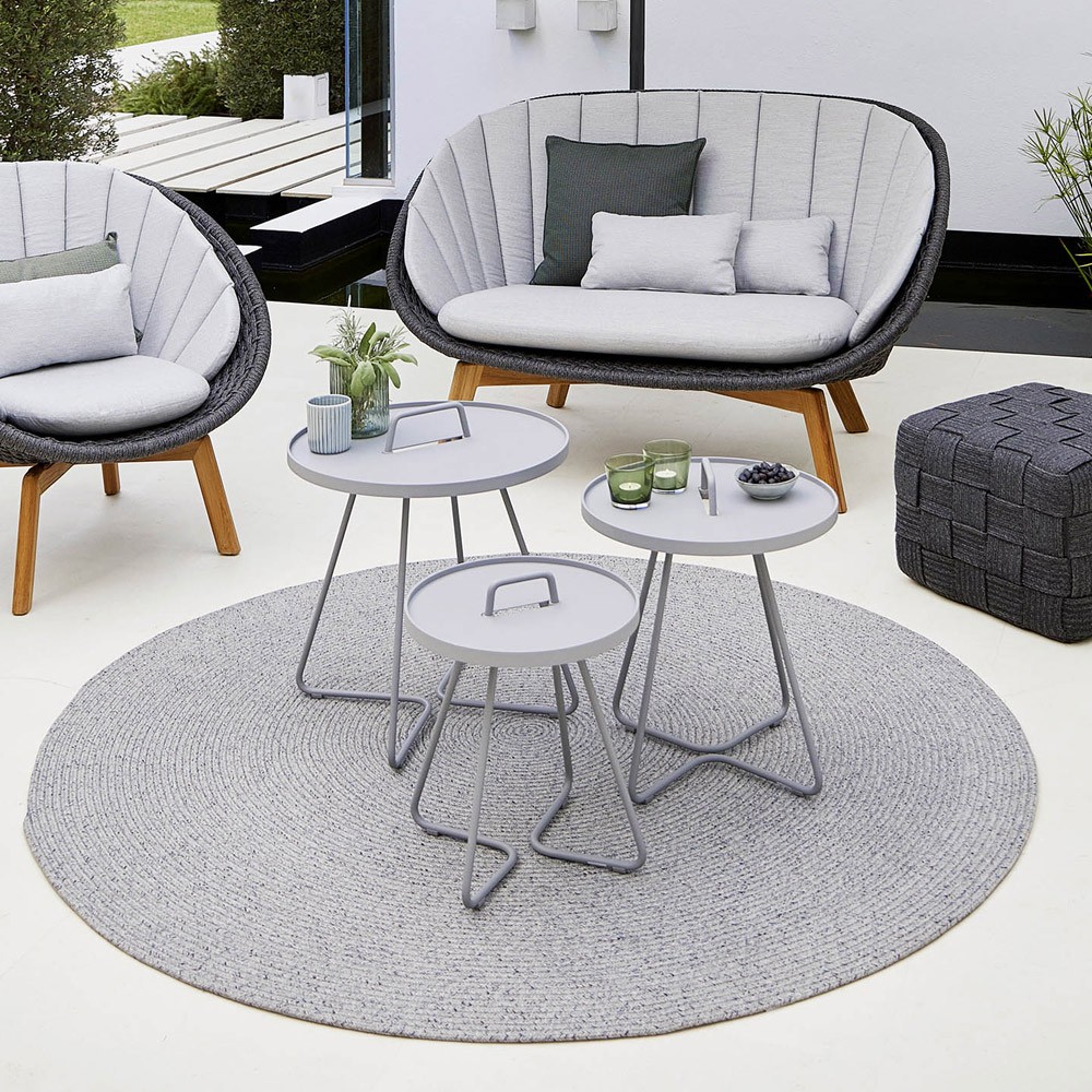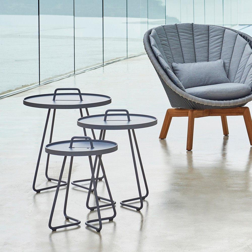 This lightweight and elegant side table is the result of an exciting design process. The idea behind the design was to create a multifunctional side table with a loose tray. Equipped with a handle so you easily can move the table around as needed. On the move countertop is a removable plate that can transform the table from a beautiful side table into a convenient serving tray in no time. And easy to grap handle secures that the One the move table can be moved indoors after use. The side table is made in 100% aluminium thus it is designed to All-year usage outdoor.