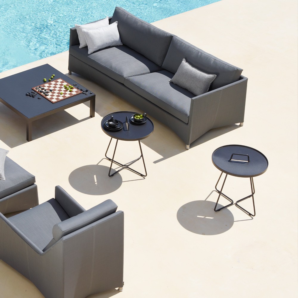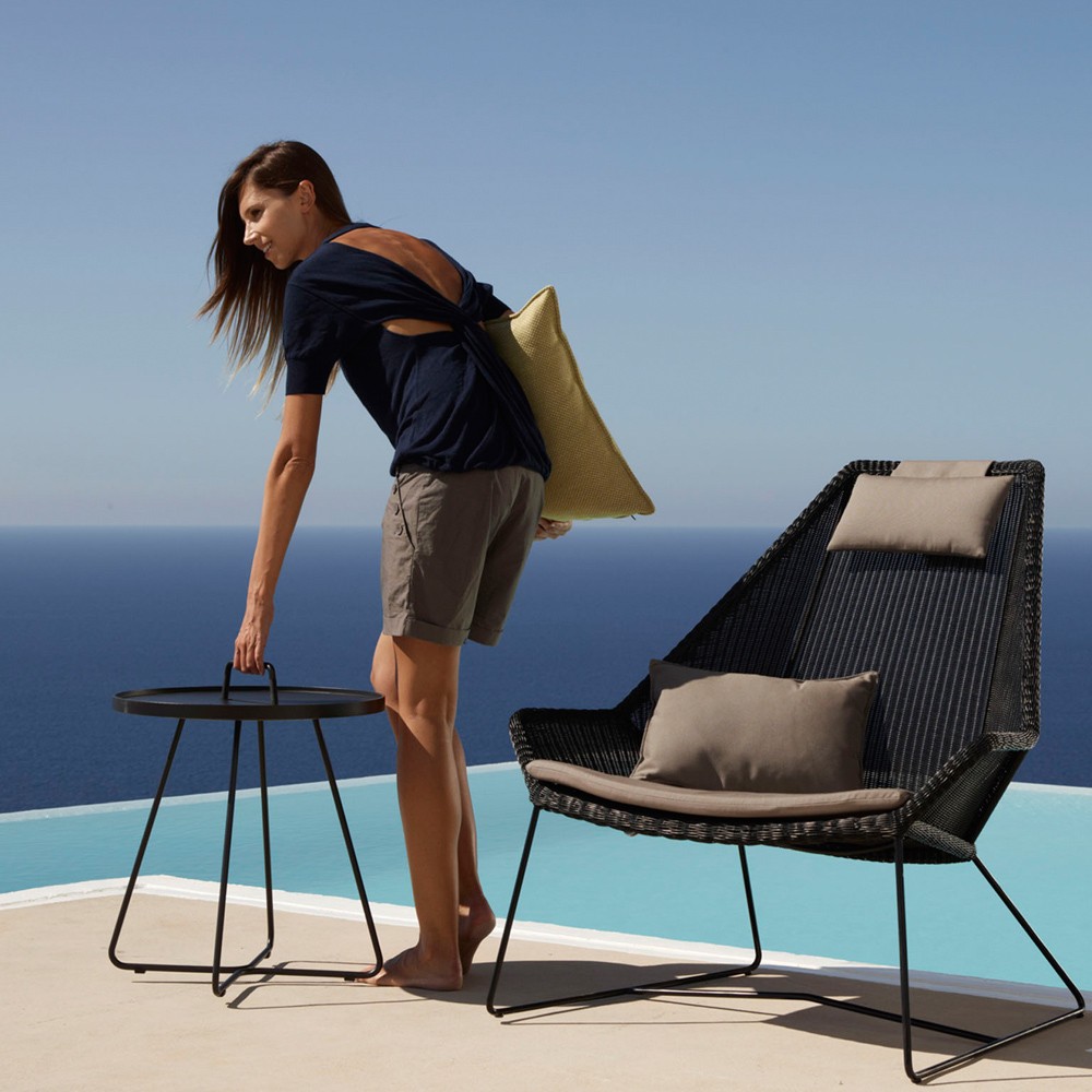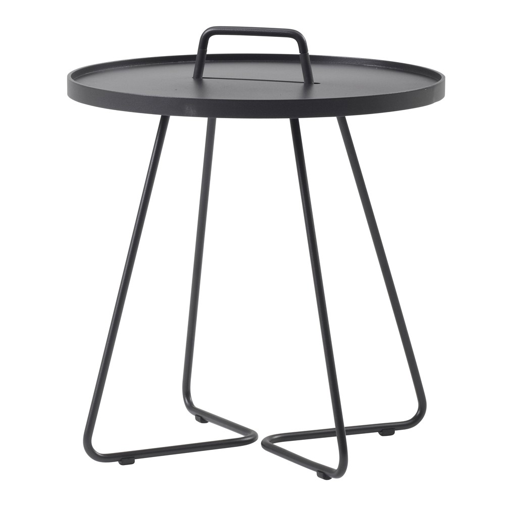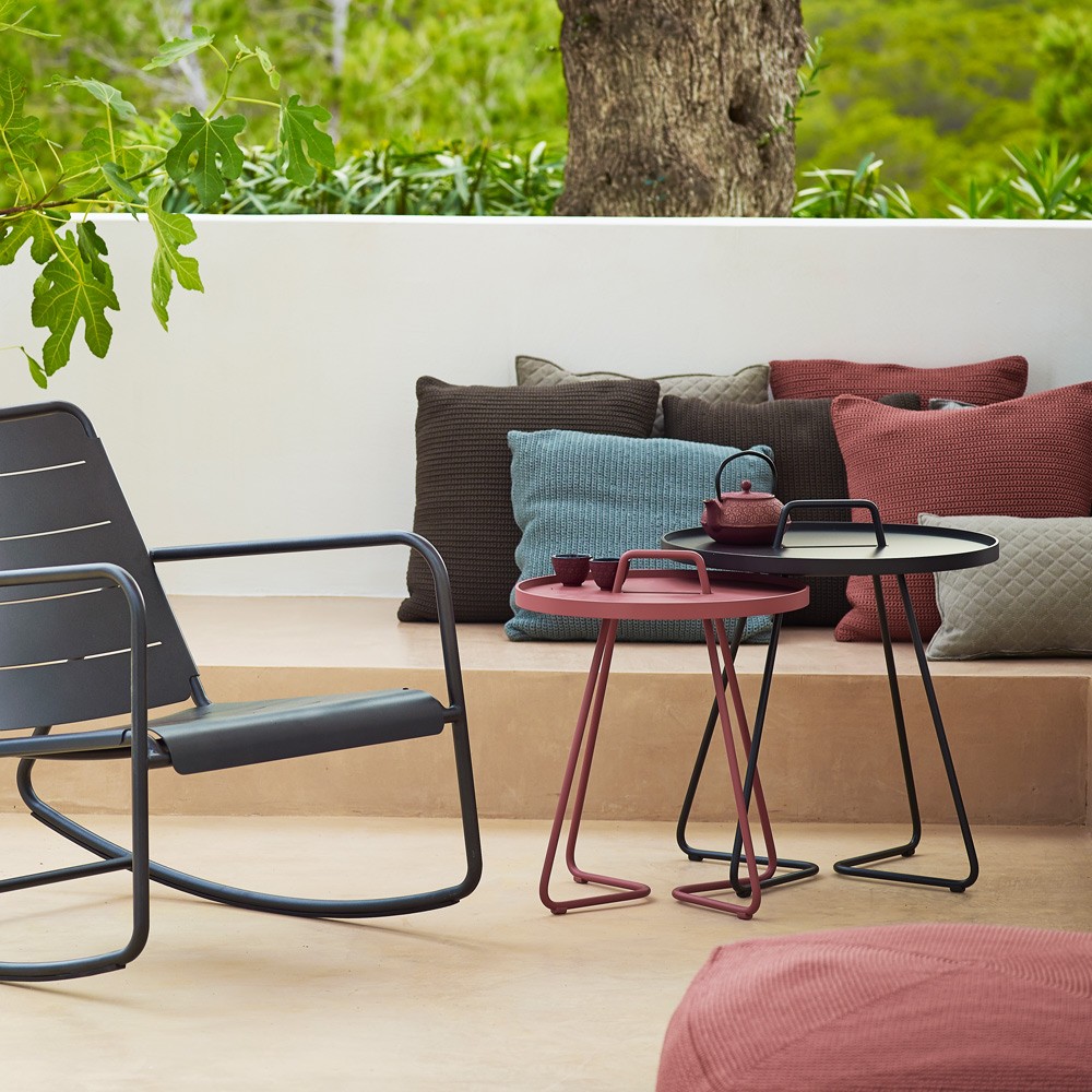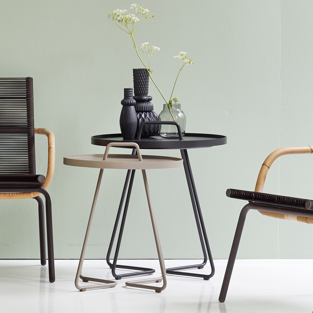This lightweight and elegant side table is the result of an exciting design process. The idea behind the design was to create a multifunctional side table with a loose tray. Equipped with a handle so you easily can move the table around as needed. On the move countertop is a removable plate that can transform the table from a beautiful side table into a convenient serving tray in no time. And easy to grap handle secures that the One the move table can be moved indoors after use. The side table is made in 100% aluminium thus it is designed to All-year usage outdoor.