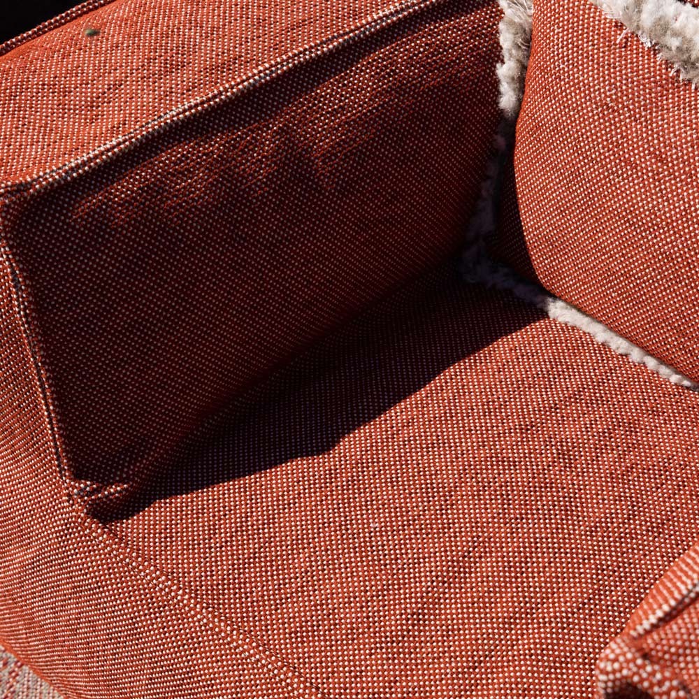 In winter, we recommend bringing the VELTY CLUB indoors. As it is removable, you can, for example, store the fabric inside your home—taking up very little space—and keep the cushions in a garden shed or similar storage space.