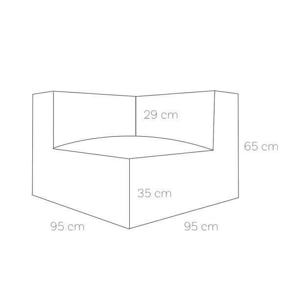 - VELTY CORNER: W 95cm x D 95cm x H 65cm