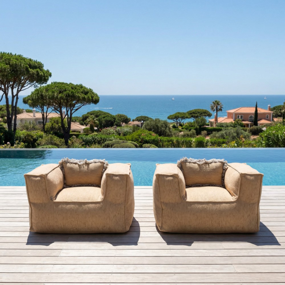 Bring a touch of chic comfort to your outdoor space with this duo of VELTY CLUB armchairs in elegant Gold – perfect for relaxing moments for two. Whether on your terrace, in the garden, by the pool, or in your living room, this soft, rounded seating blends effortlessly into any setting.