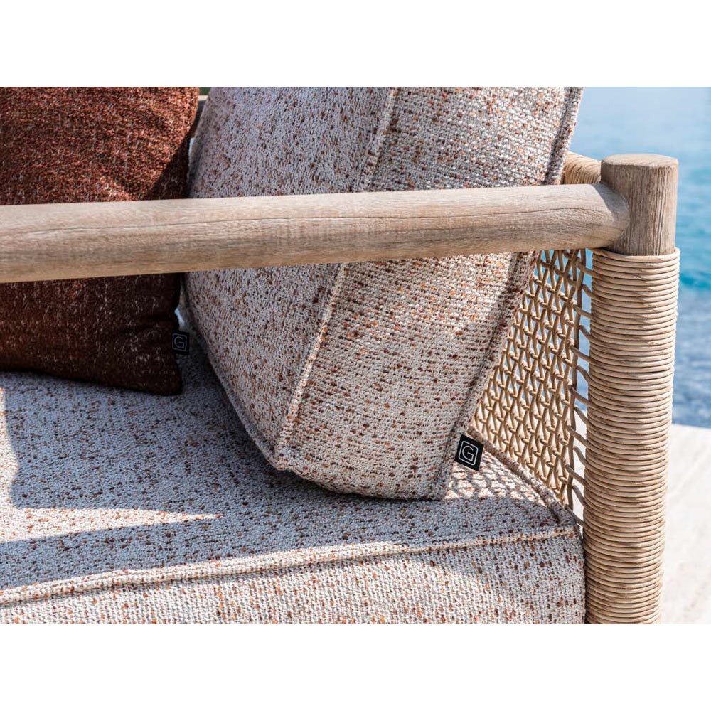 - Material of excellence: the frame in reclaimed teak wood gives the MONA sofa a refined aesthetic and majestic presence. Each element tells a unique story, adding a dimension of luxury to your outdoor oasis.