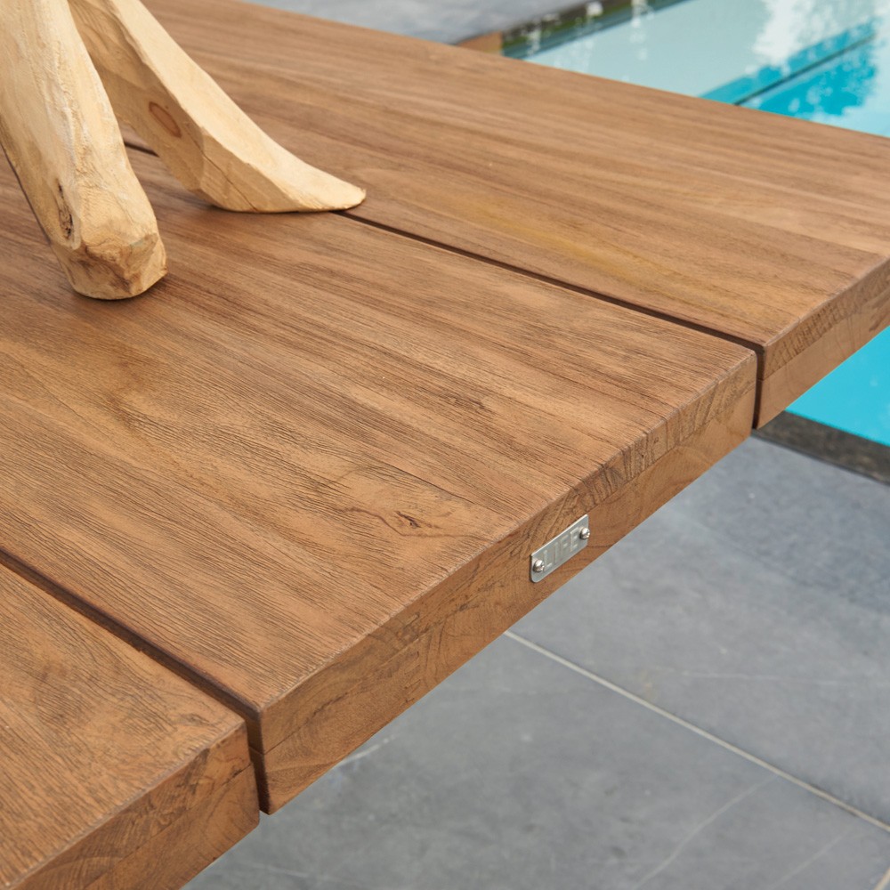 The Timor table is made of high-quality materials. SVLK-certified Indonesian teak offers a generous thickness of 5 cm and durability over time. The solid aluminium base ensures the stability of the large tabletop and does not require any special maintenance.
