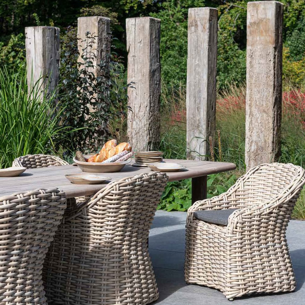 Convivial and authentic, this characterful table is ideal for meals outdoors. . What makes it so unique are not only its 6 feet but also the knots in its wood that make it unique.