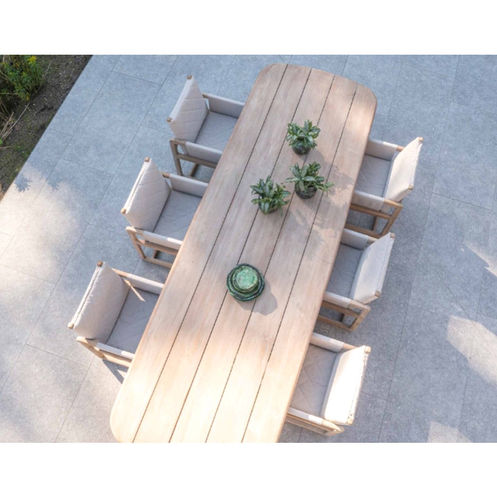 This high quality table can accommodate 10 to 12 people depending on the configuration and width of the chairs or armchairs.