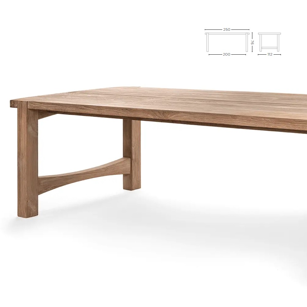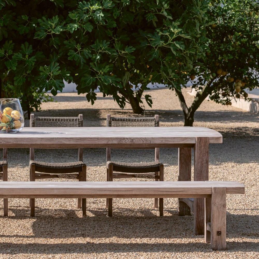 Bring a touch of character to your outdoor space with the JUNO garden table. Stylish and inviting, it stands out with its reclaimed teak tabletop made from wide, beautifully weathered boards, supported by solid, clean-lined legs. Each table is unique: natural variations, the marks of time and the distinctive grain of the wood give every piece its own story, adding genuine charm and authenticity to your terrace.