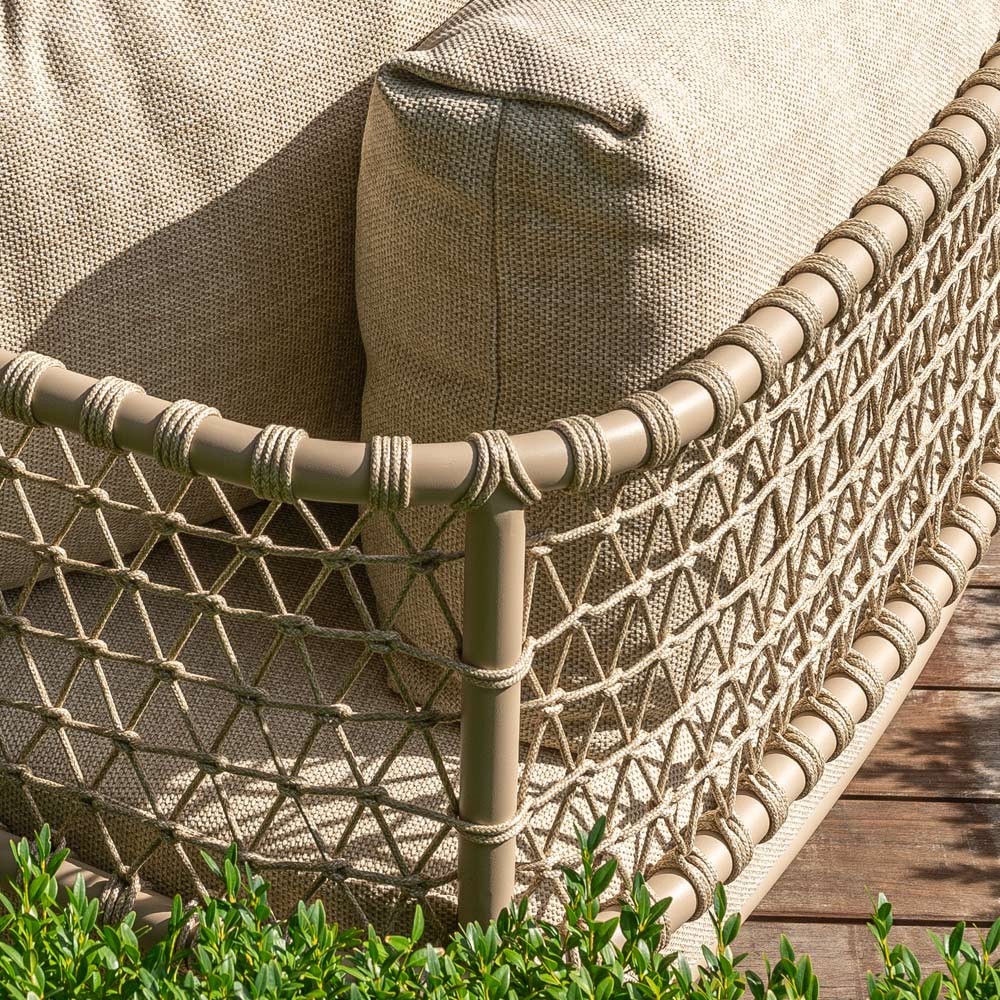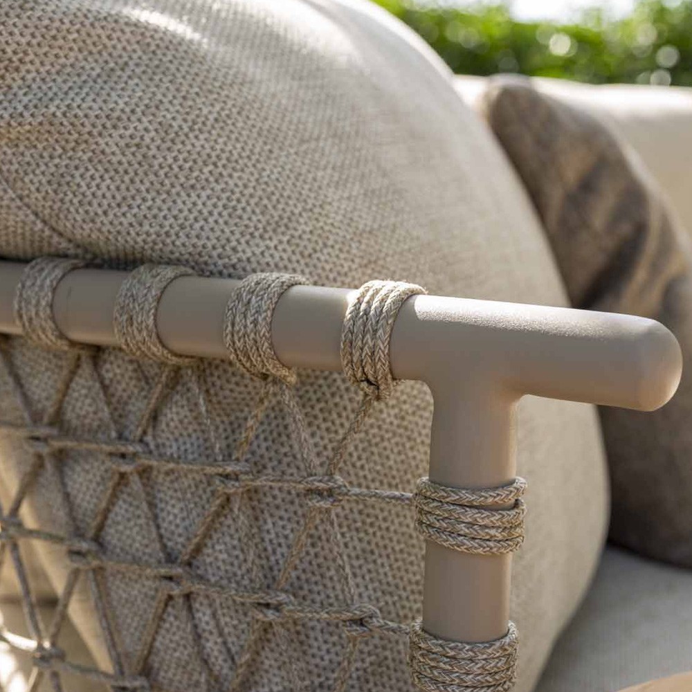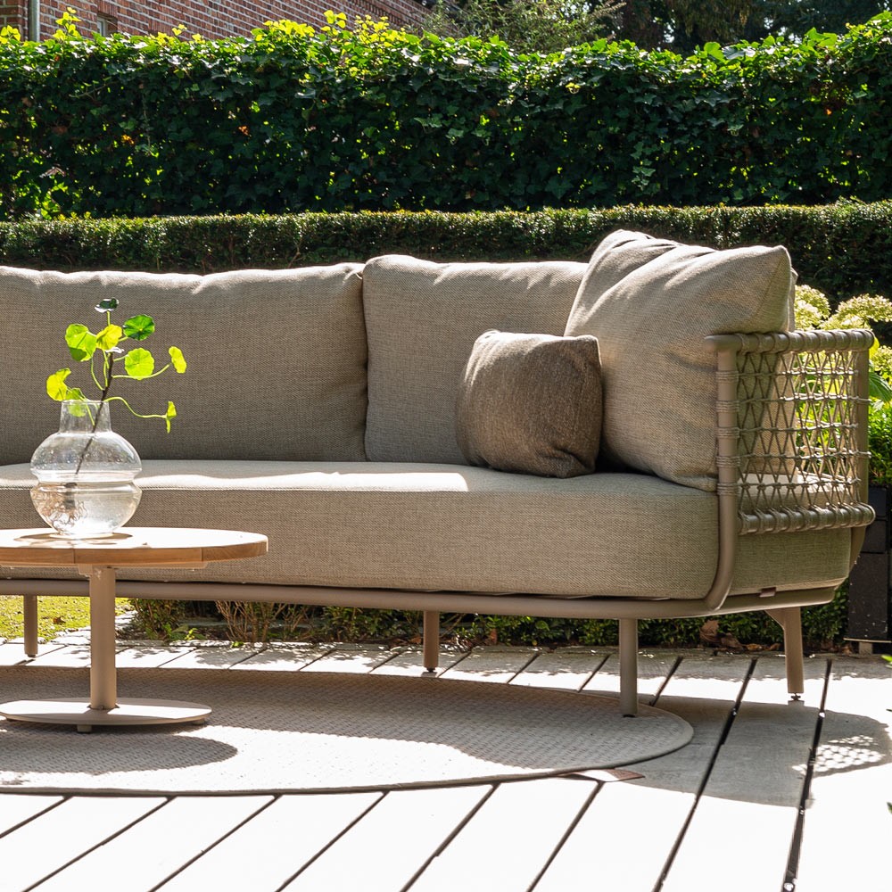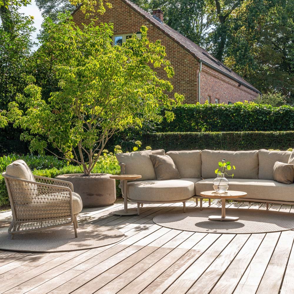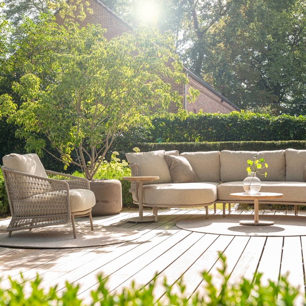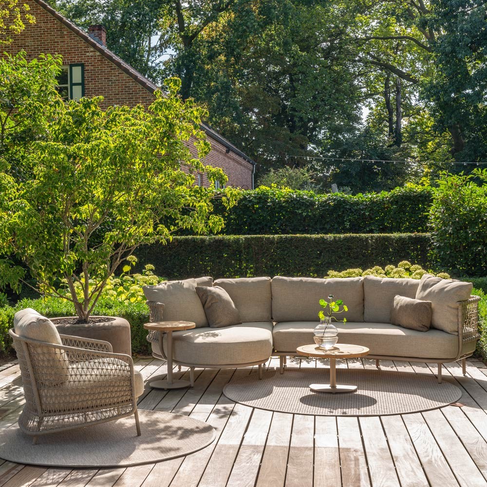 Its ergonomic design and plush seating ensure optimal comfort, while its carefully crafted finishes and neutral tones complement any terrace or garden style.