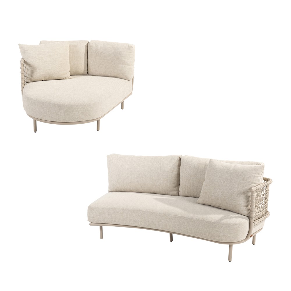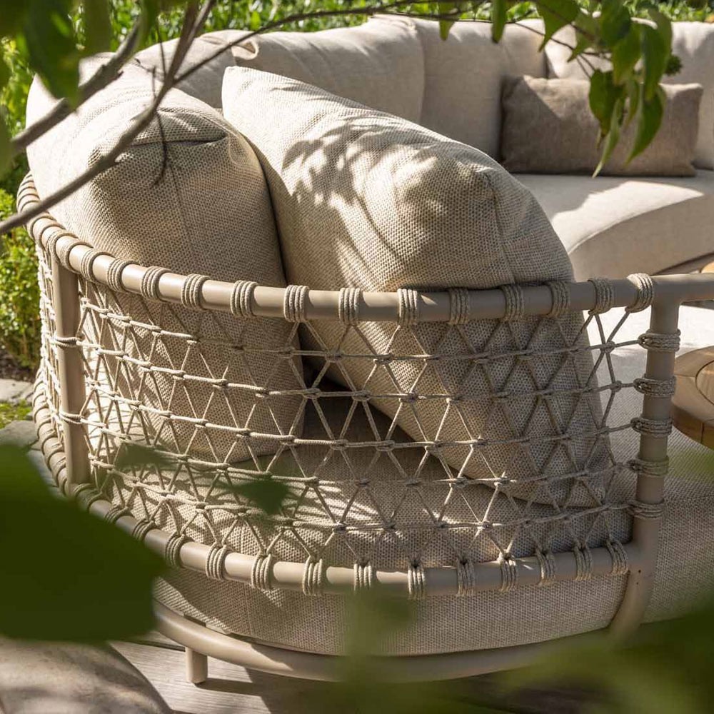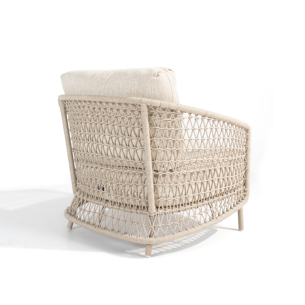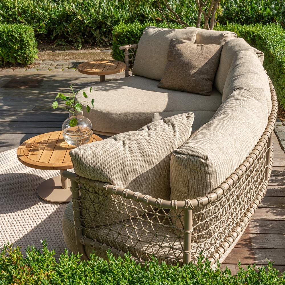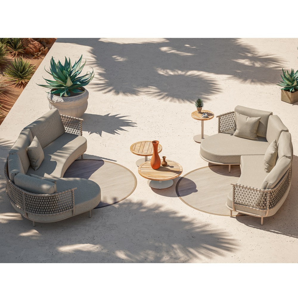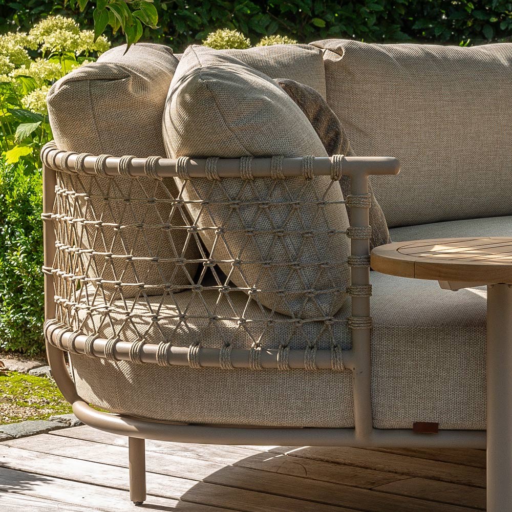 Its ergonomic design and plush seating ensure optimal comfort, while its carefully crafted finishes and neutral tones complement any terrace or garden style.