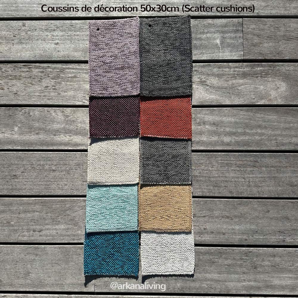 Available in a variety of colors and sizes, these accent cushions are the perfect complement to VELTY long chairs, as they are made from the same fabric.