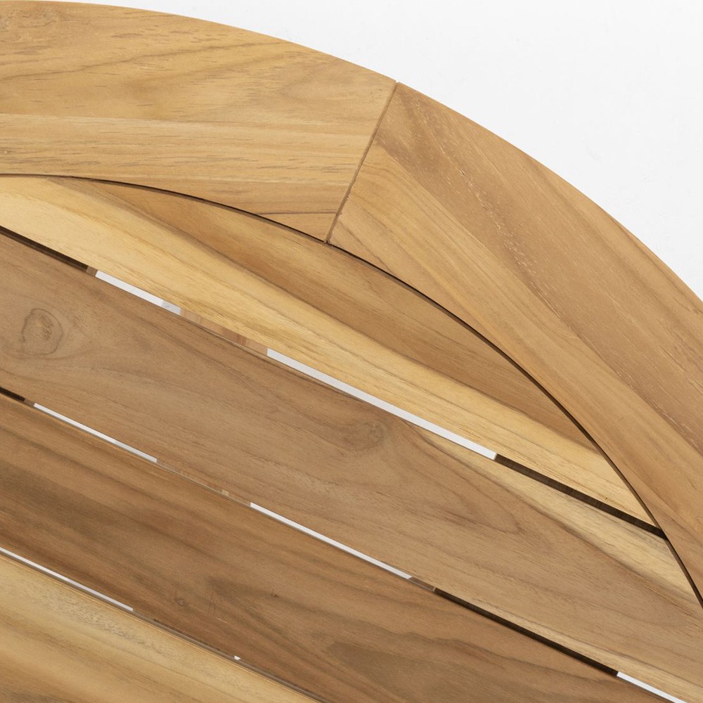 - Table: Natural teak (raw finish, no wood stain)