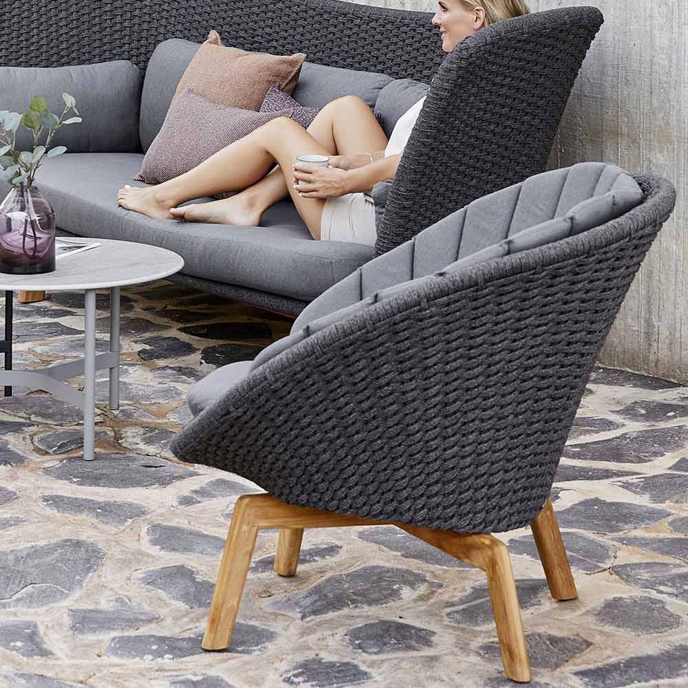 The Peacock garden armchair brings exceptional style and premium comfort to any open-air space. Designed by Foersom & Hiort-Lorenzen MDD, this armchair matches all-weather durability with a bold, Scandinavian design. The soft rope pattern gives added texture and softness in a very modern shape and ideal for outdoor use in all climates, because it is both temperature and UV resistant. The cushion insert wraps your body for comfort for every backyard get together. The Peacock series transforms your outdoor space into a showroom-worthy environment that will be the envy of your neighbors.