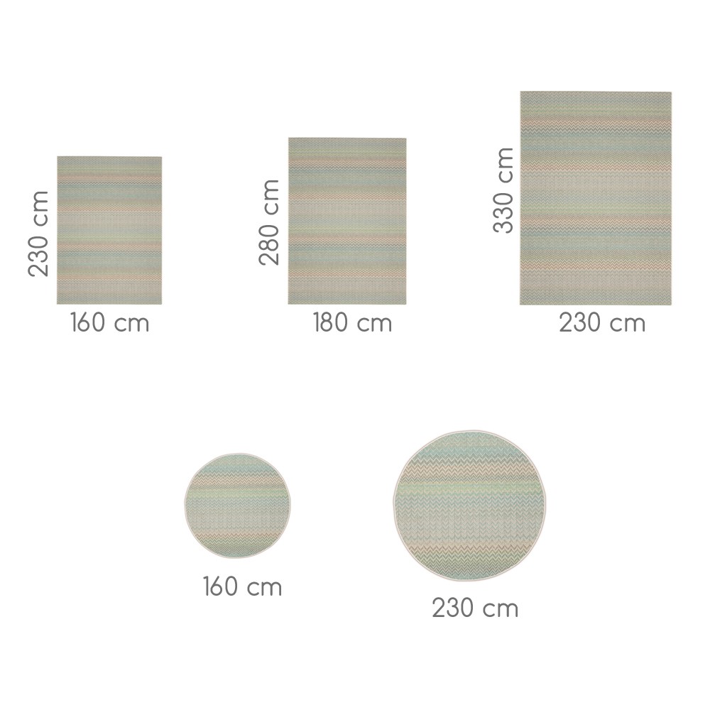 Note: Declined in 4 colours, this outdoor / indoor rug is also available in 180x280cm, and 230x330cm.