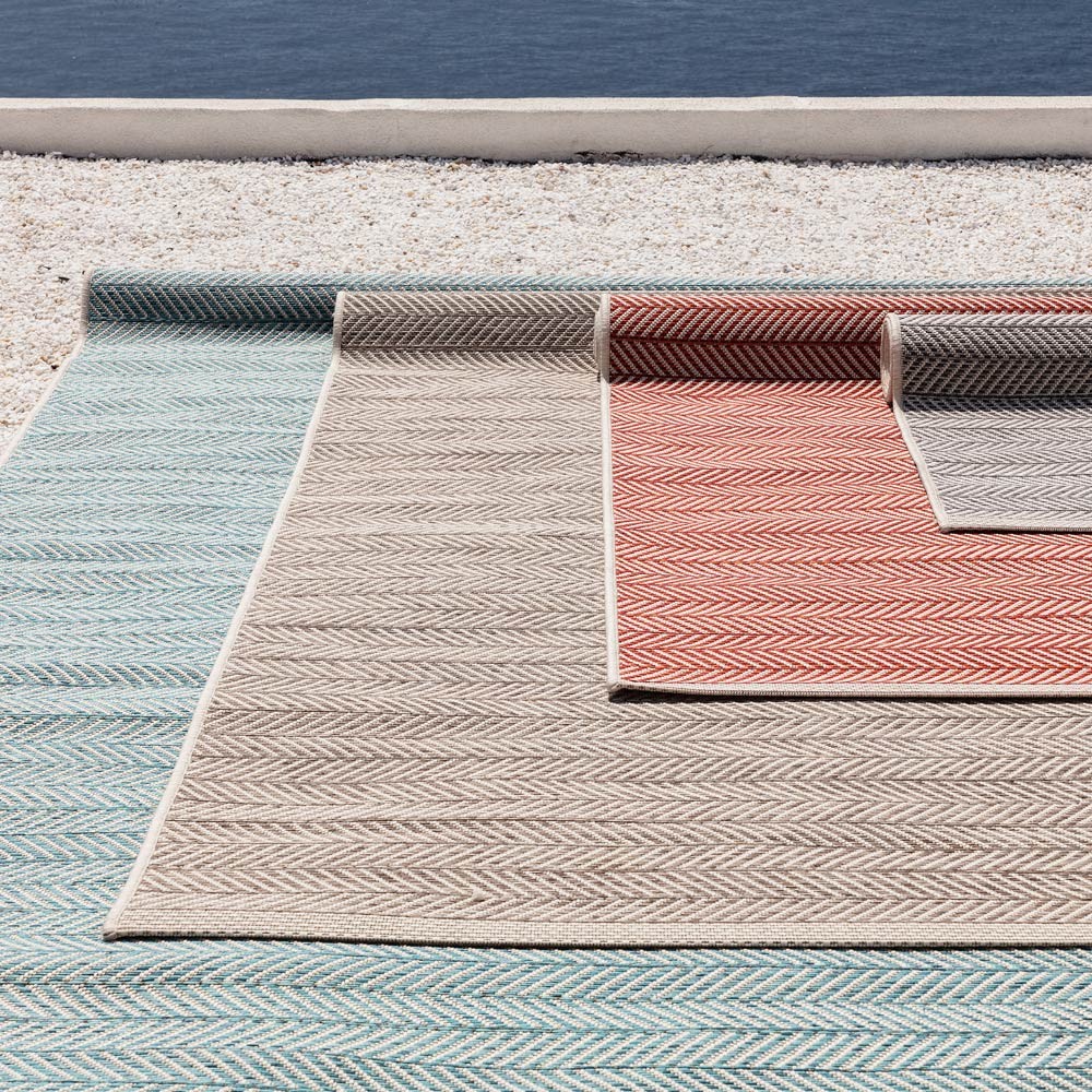 The Rylander rug is a timeless piece of decoration. Equally comfortable inside and out, this beautiful herringbone patterned rug in natural tones is perfect for bringing a cocooning vibe to your home.