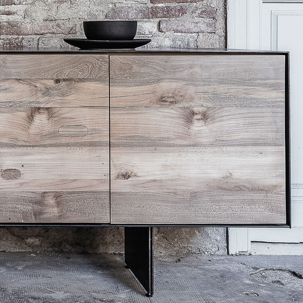 Modern and authentic, the GEOX buffet has it all. Made with recycled natural teak wood, the cabinet is sturdy and environmentally friendly. Coated with black metal, it will bring an industrial chic style to your interior. Thanks to its 4 doors, it offers plenty of storage space. Its original design with its black metal base gives it a lot of character.