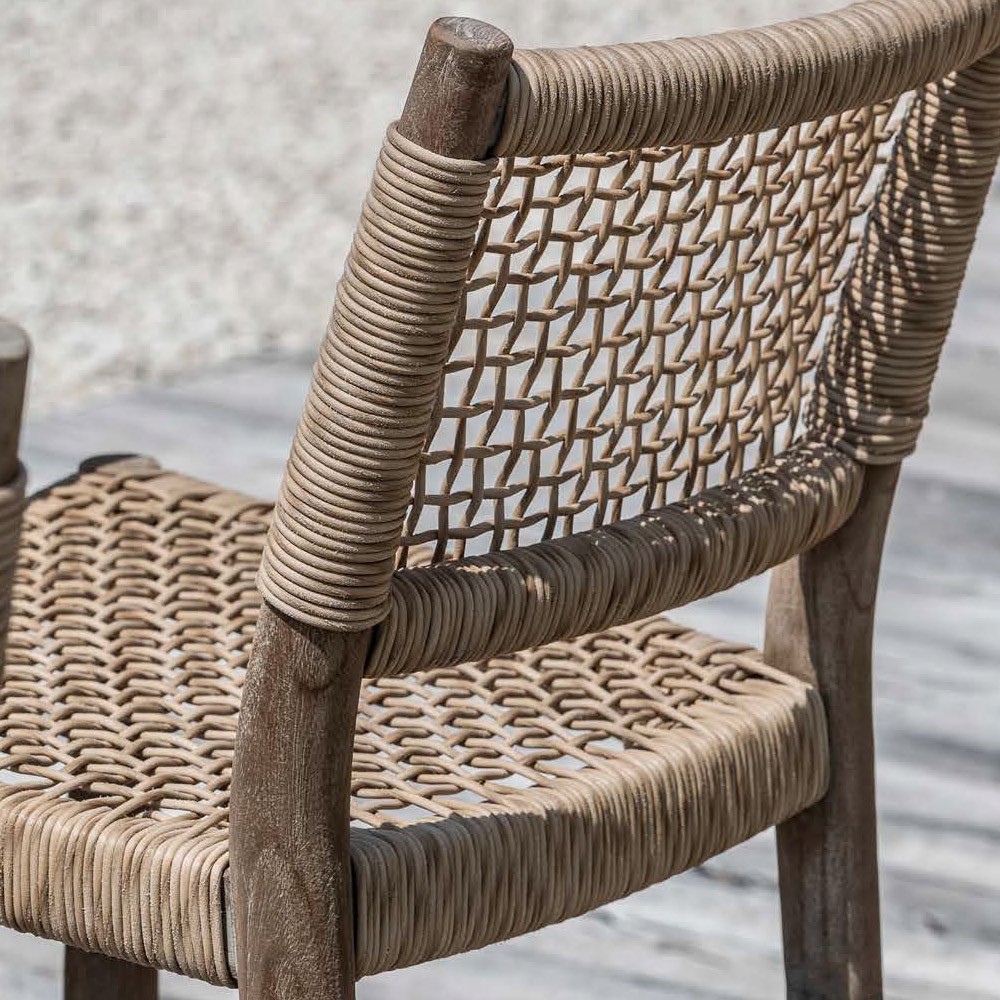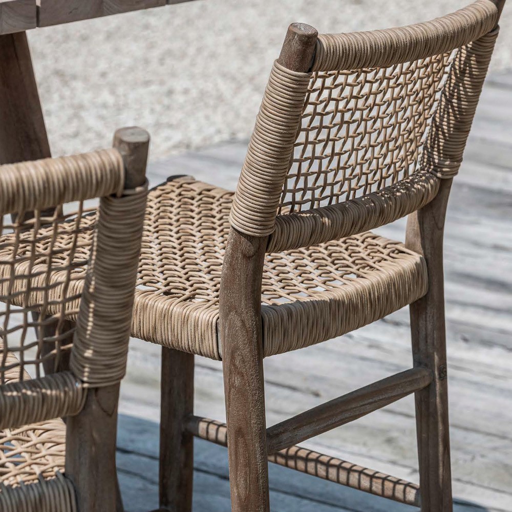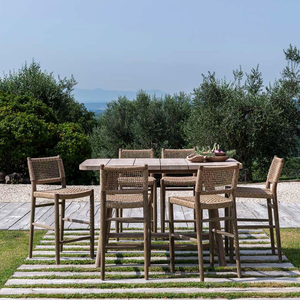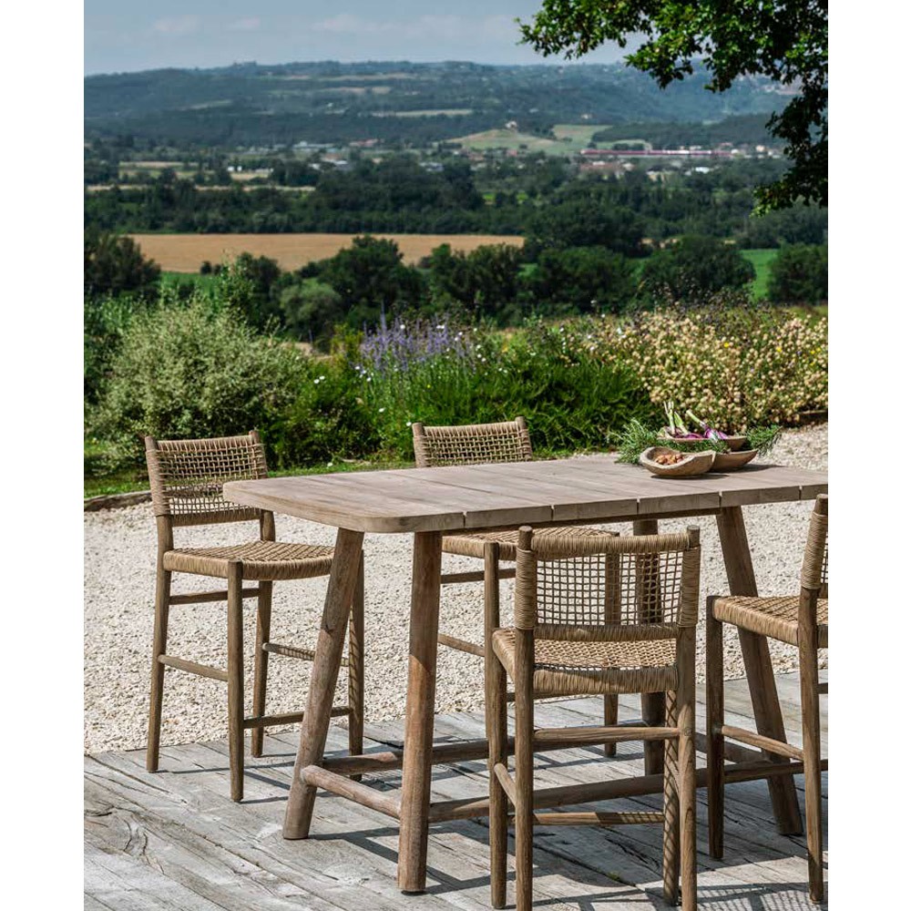 Laissez-vous séduire par cette magnifique chaise haute MONA. Faites en teck recyclé d’aspect brut, cette chaise séduit par son style authentique et naturel. L’assise et le dossier, constitués de polyéthylène imitant l’aspect osier tressé, lui apportent un air de légèreté et une résistance aux aléas climatiques.