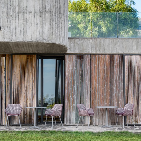 Chaise de jardin VIBE résine tressée gris clair/bordeaux/rose