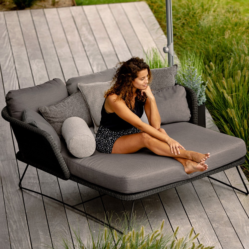 En solo ou en duo, savourez un instant de détente absolue confortablement installé sur le double bain de soleil HORIZON en résine tressée noire. Fermez les yeux et allongez-vous en toute tranquillité sur ses coussins moelleux, soutenus par un dossier enveloppant.