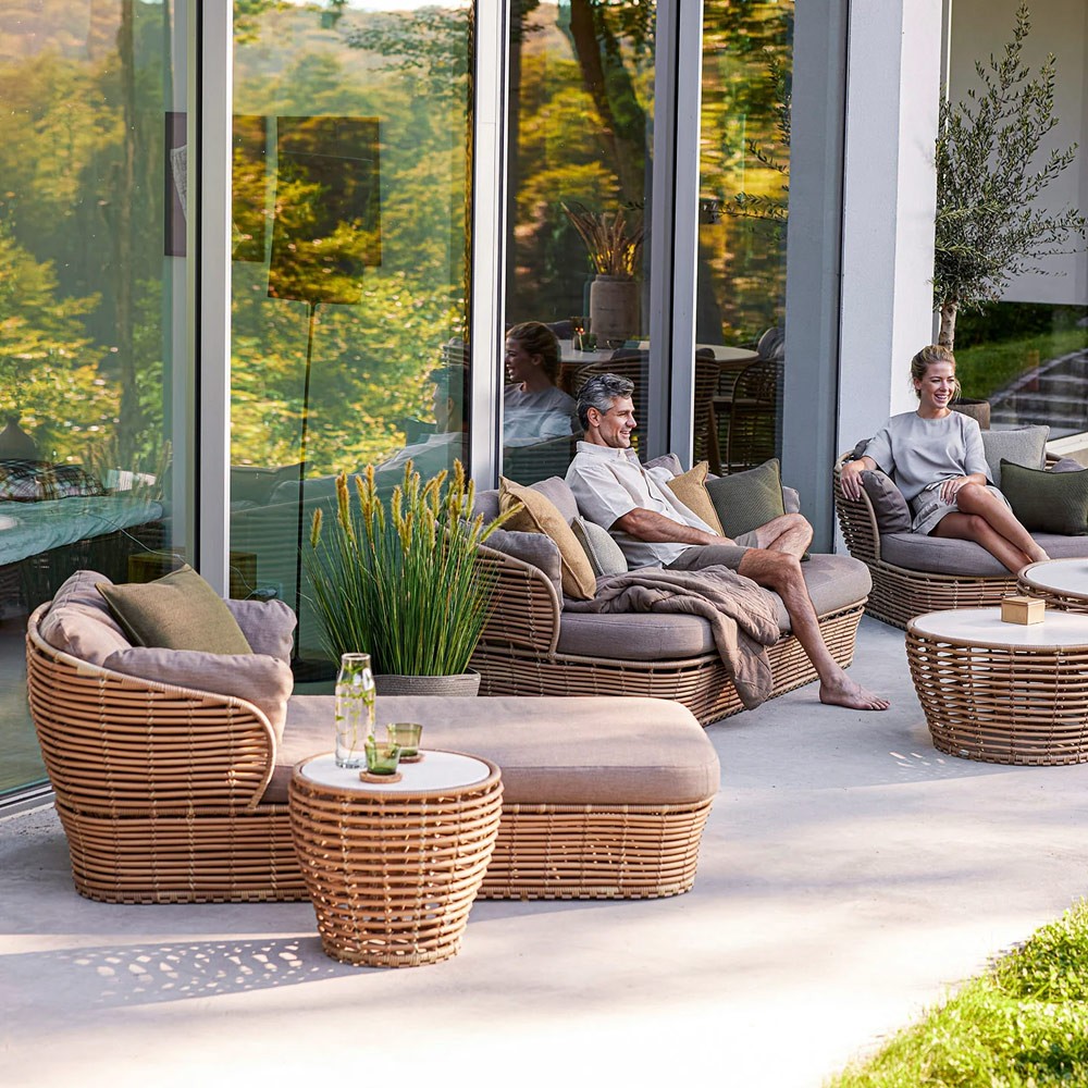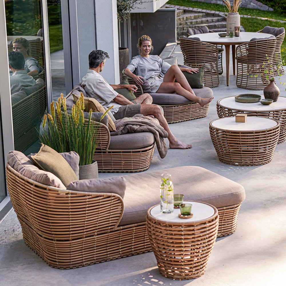 Laissez-vous séduire par ce bain de soleil Basket au design inspiré par la nature. Tel un nid douillet, il imite les lignes d’un fauteuil en osier, tout en étant fabriqué avec des matériaux résistants et durables, permettant de l’utiliser en extérieur toute l’année. Les coussins sont conçus pour offrir un excellent confort et un séchage rapide après la pluie. Grâce à son assise profonde, Basket offre un grand espace, propice à la convivialité et à la détente.