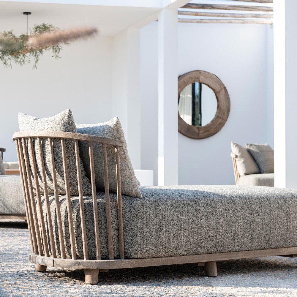 Créez un coin de paradis dans votre espace extérieur avec le duo de chaises longues CARLA. Fabriquées en teck recyclé naturellement grisé, ces chaises longues apportent une élégance intemporelle à votre environnement en plein air. Les coussins épais et généreux ajoutent une touche de confort supplémentaire.
