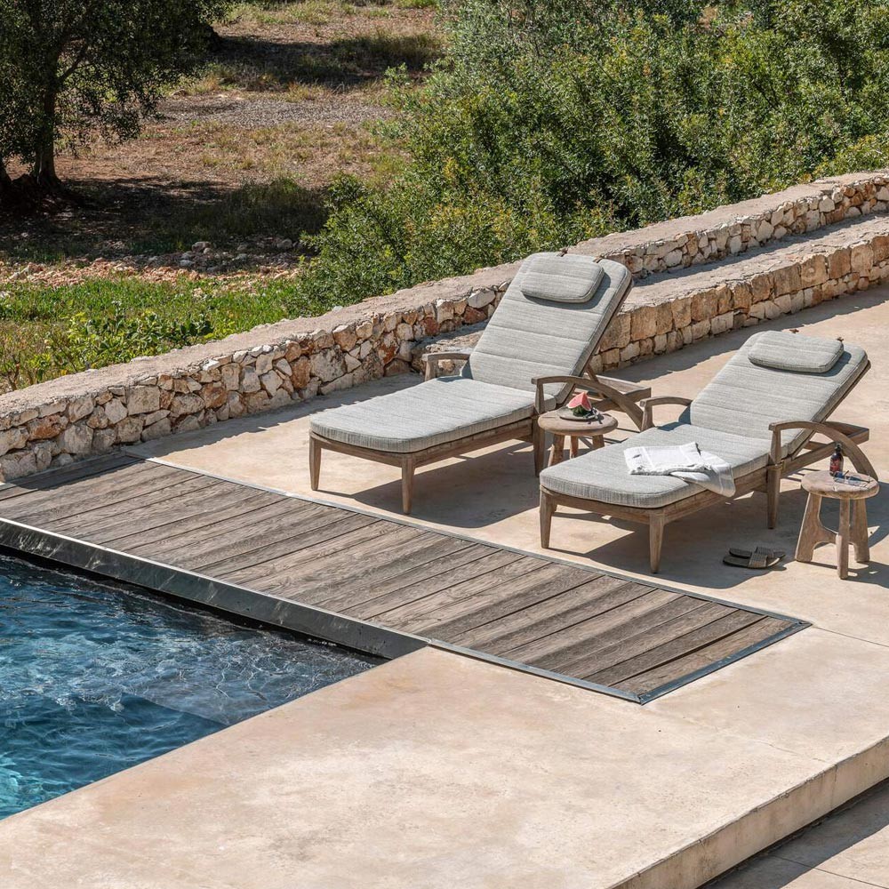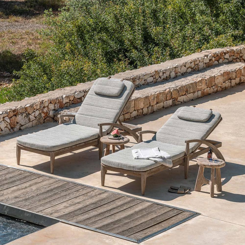 Avec ses lignes épurées et sa finition gris naturel subtile, le FRESCO met en valeur les nuances authentiques du teck recyclé, un bois noble et durable, parfaitement adapté à une utilisation en extérieur.
