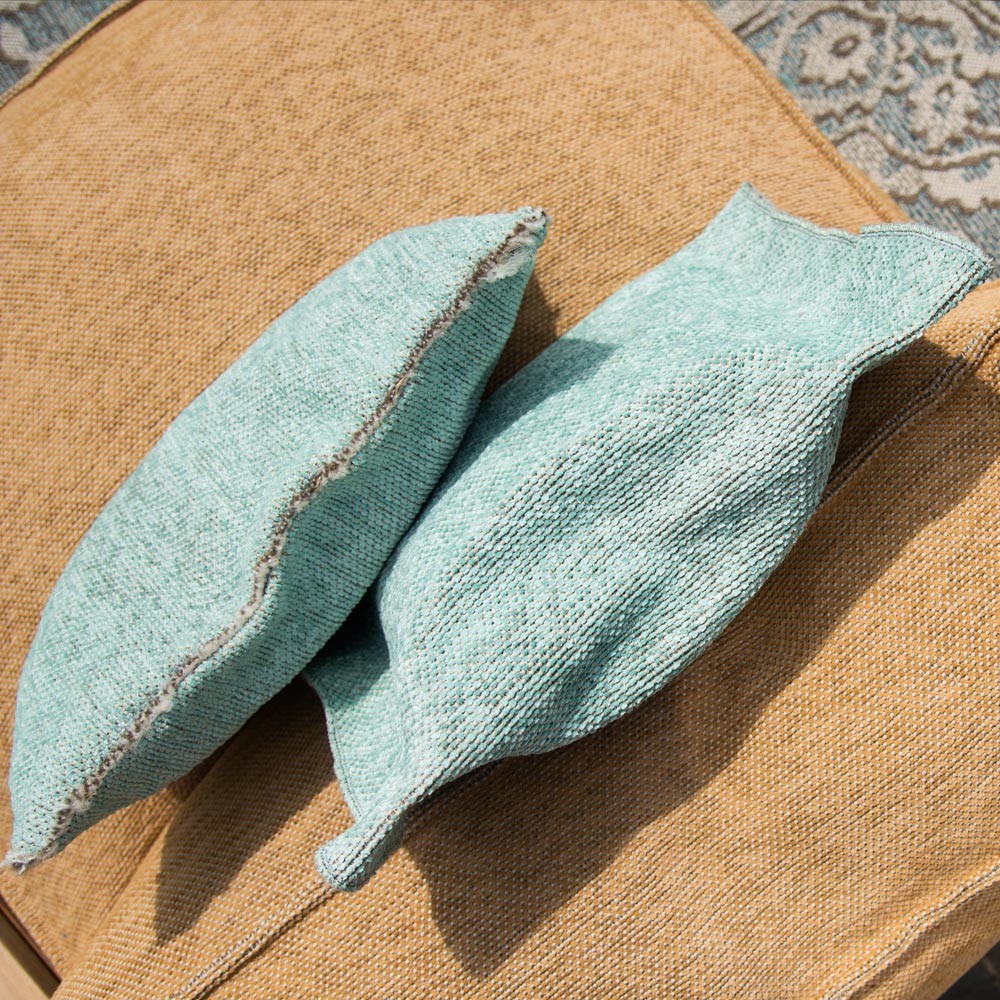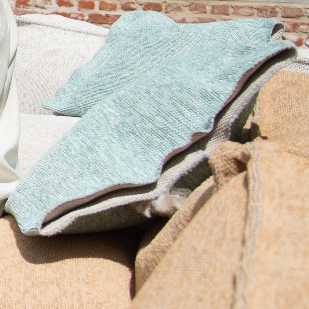 Coussin de décoration de forme carrée, résistant et doux au touché, le tissu est constitué de fil "chenille", ce qui lui donne cet aspect velours, une douceur à la fois visuelle et tactile. Fabriqué en Belgique, il est idéal pour l’extérieur* et trouvera également sa place dans votre intérieur.
