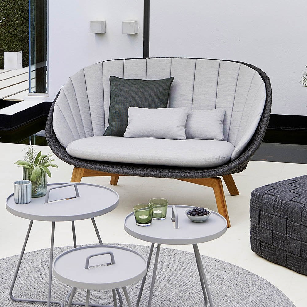 Design élégant avec un look chaleureux. Le Canapé 2 places Peacock est à la fois moderne et très confortable. Doté d’un piètement en teck, son assise et dossier sont fabriqués en corde souple, qui est un matériau nouvelle génération très résistant. Avec sa forme enveloppante et les coutures décoratives en éventail de son coussin de dossier, le canapé Peacock fait penser à un paon majestueux faisant la roue. Le canapé Peacock qui existe aussi dans une autre couleur de coussin (gris foncé), et dans un autre matériau, peut se compléter avec d’autres biens de la série Peacock pour redonner du style à votre extérieur.