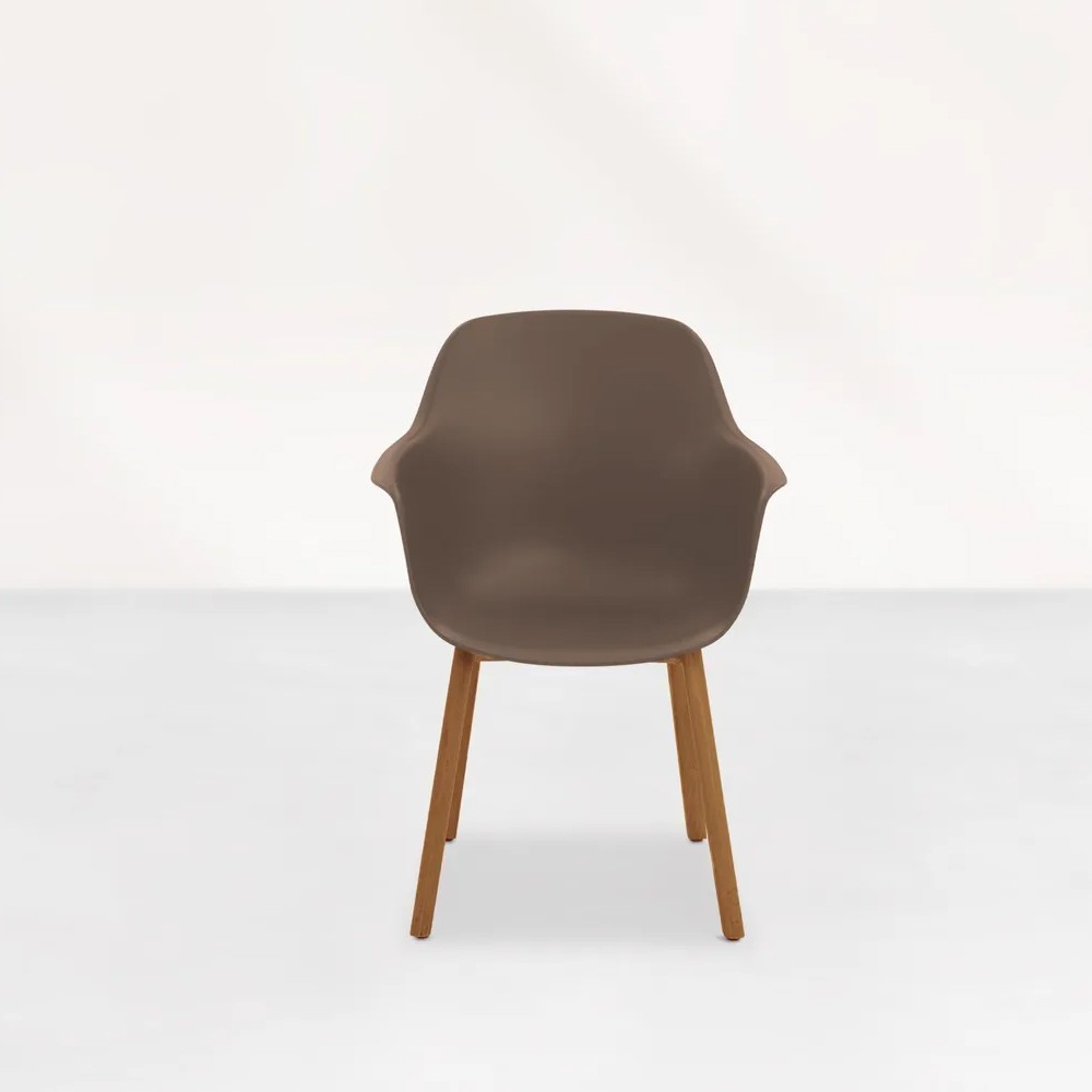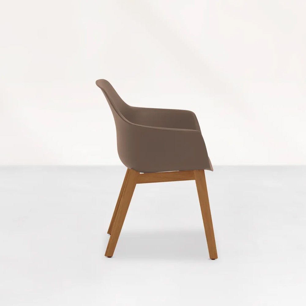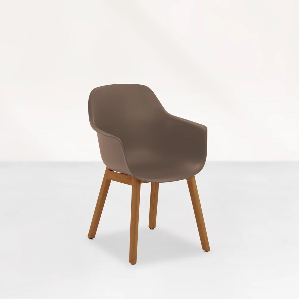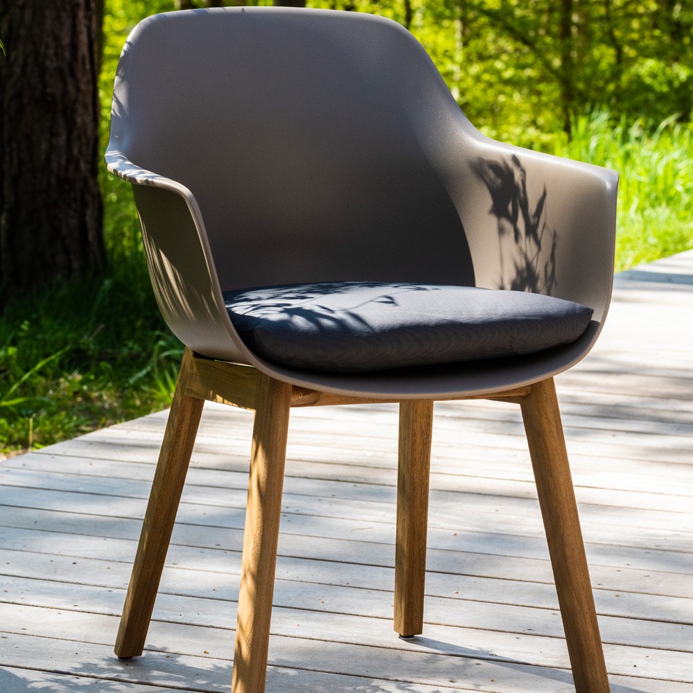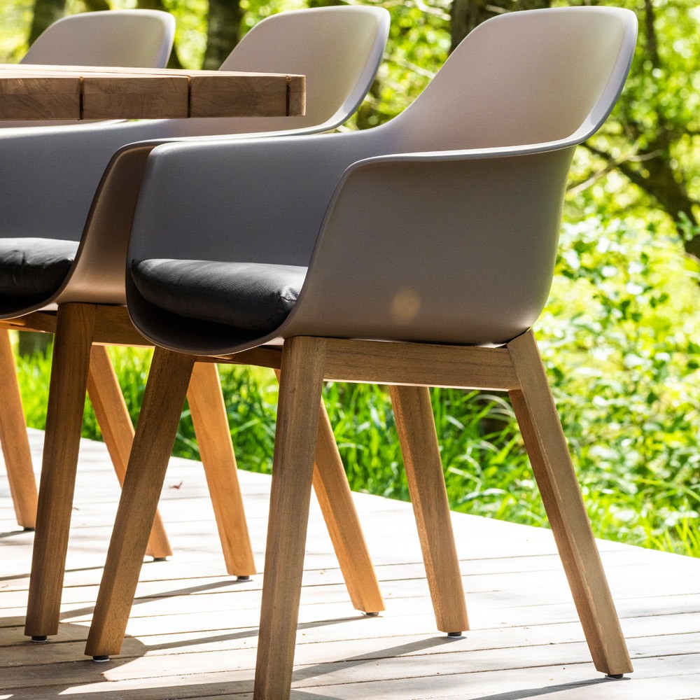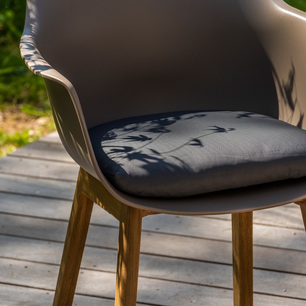 - 8 chaises DENVER taupe et piètement teck (L 62cm x PR 52cm x H 86cm) + 8 coussins d’assise