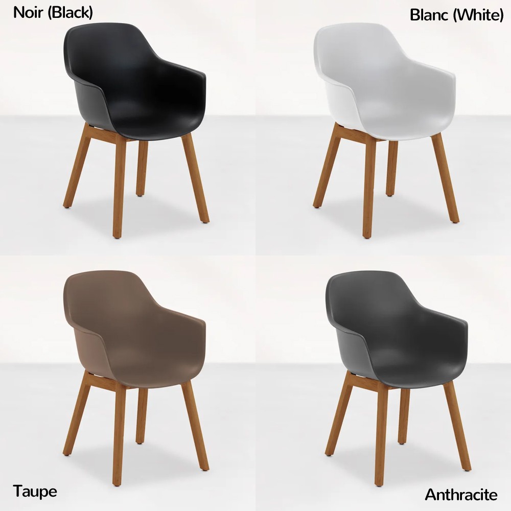 Note : les chaises existent en d’autres coloris que le Taupe, le piètement peut également ainsi que les coussins d’assise existent aussi avec d’autres tonalités.