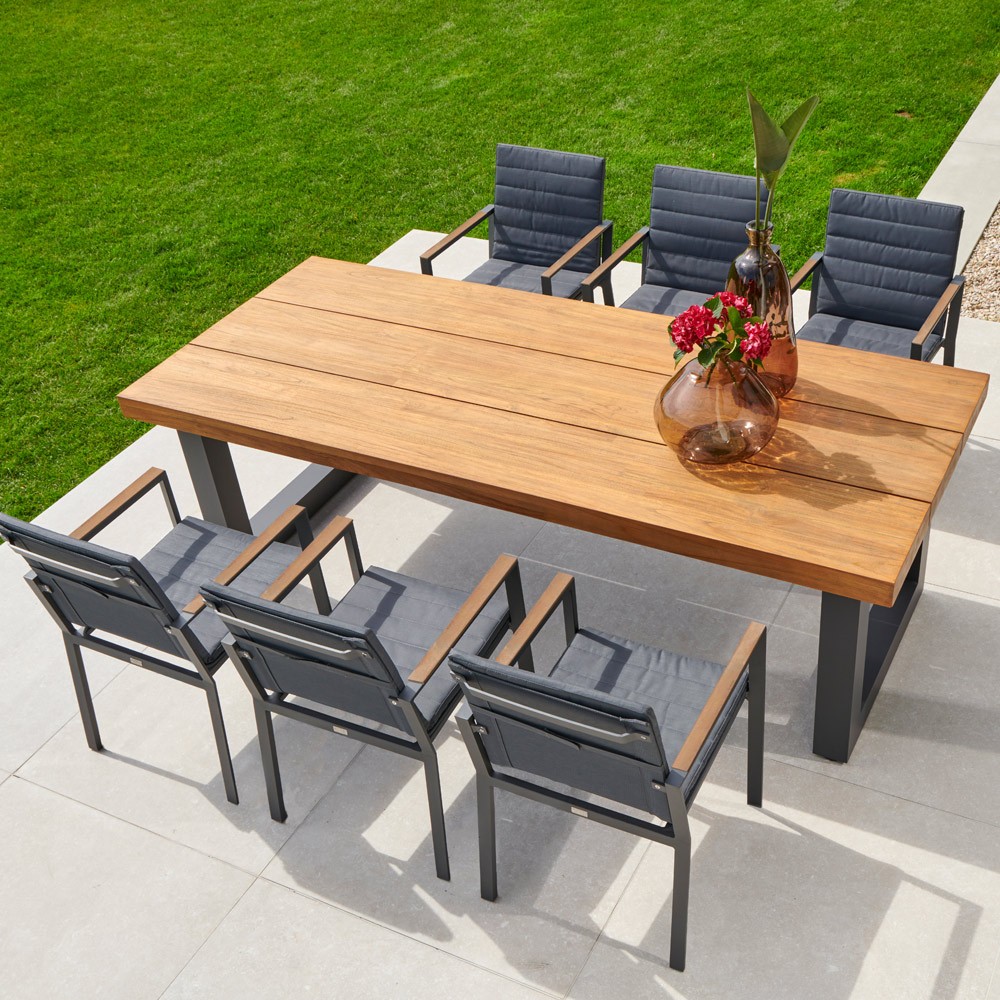 - 1 table NEVADA en teck et piètement aluminium anthracite (L 240cm x PR 100cm x H 76cm)