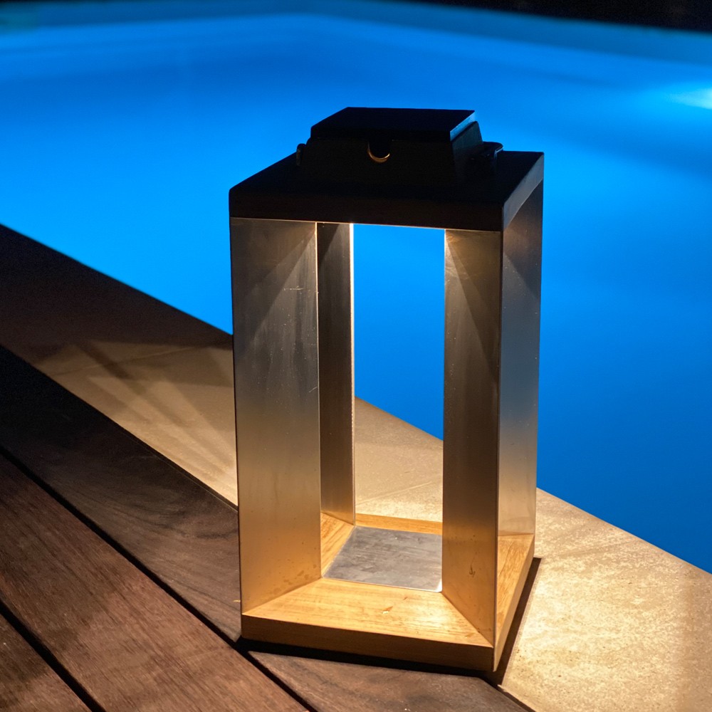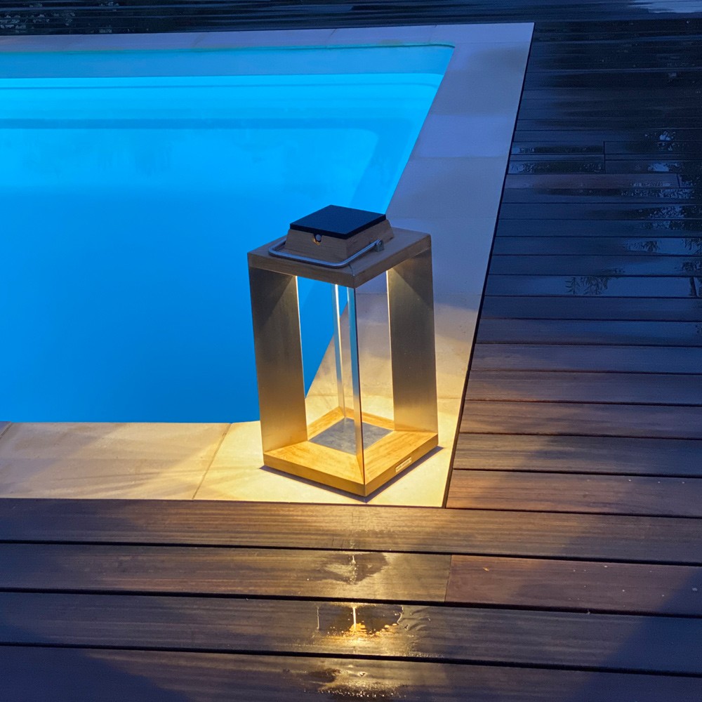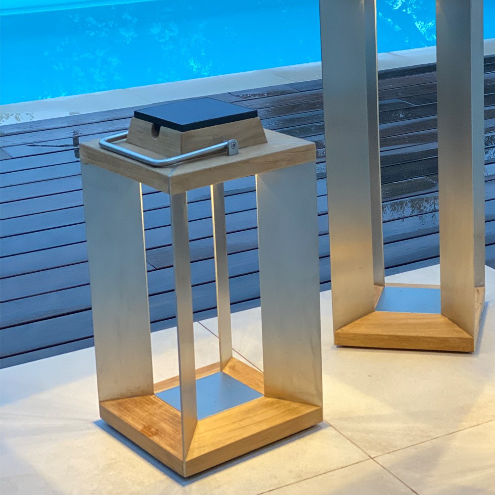 Cette magnifique lanterne solaire, mélange subtil entre l’inox brossé et le teck en font un véritable point lumineux qui donnera une touche design à votre extérieur.