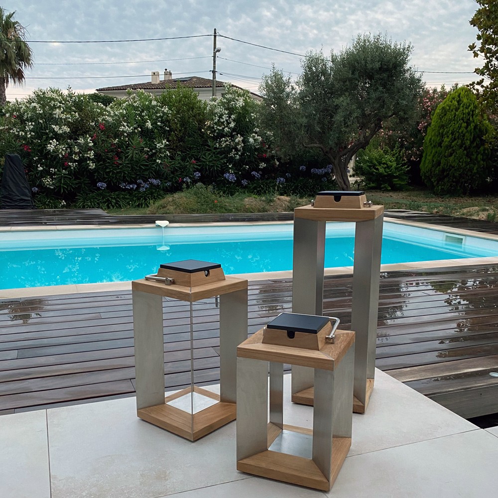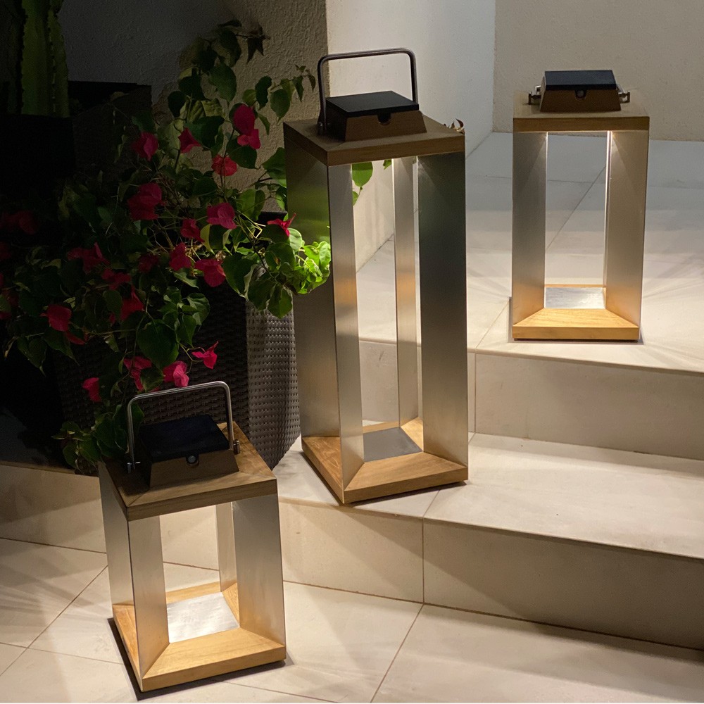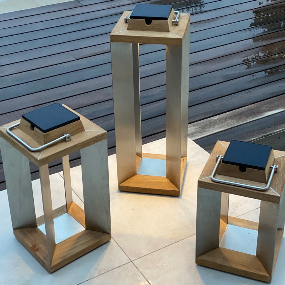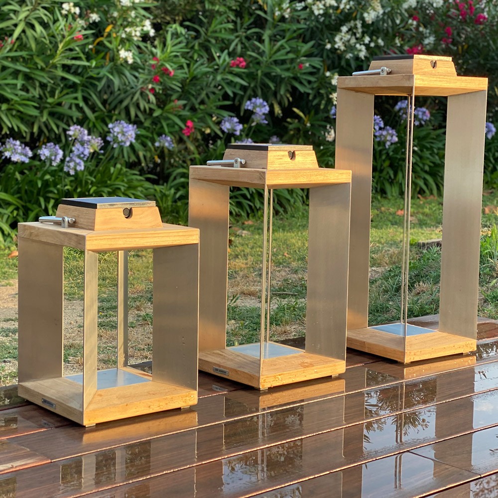 Conçues en France, esthétiques et robustes ces 3 lanternes solaires en Teck et inox illumineront votre jardin, patio ou terrasse à la tombée de la nuit.
