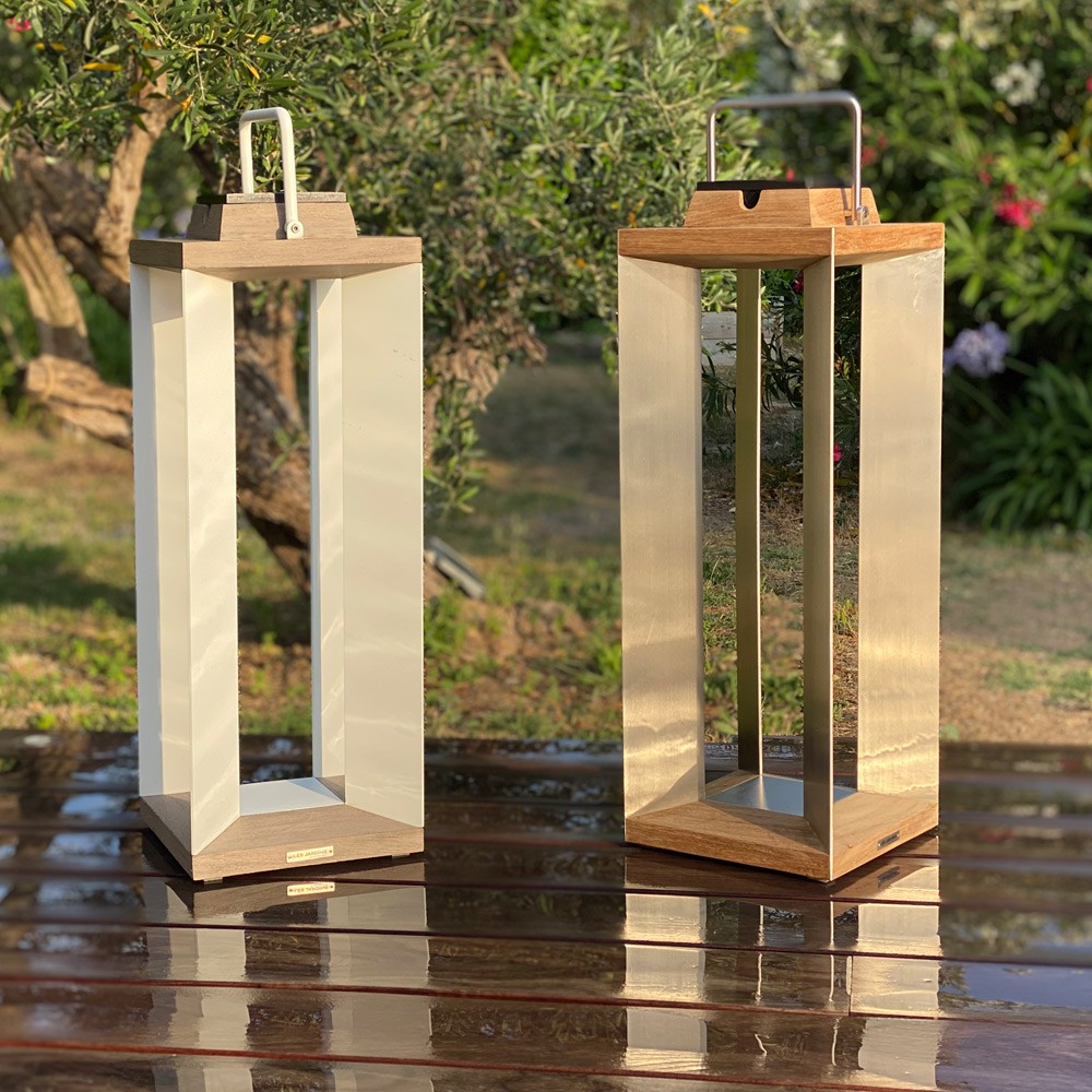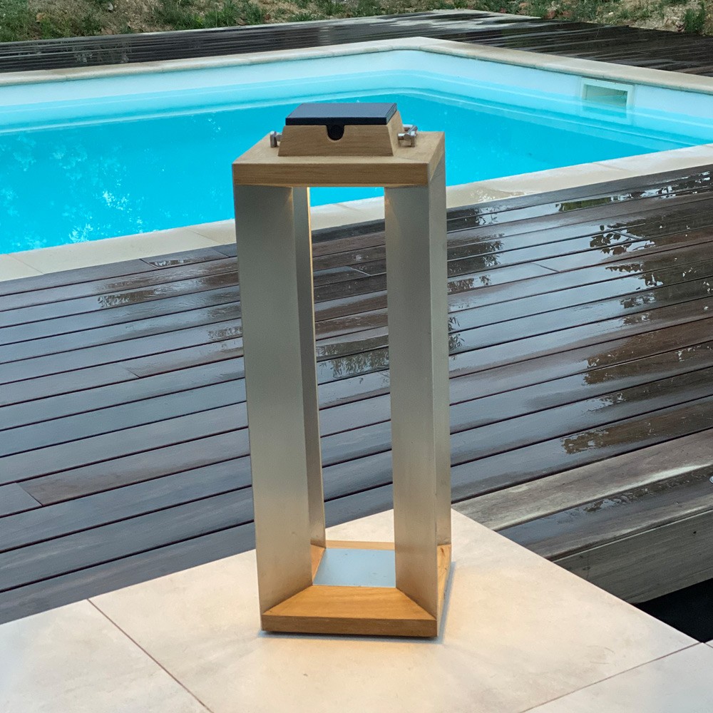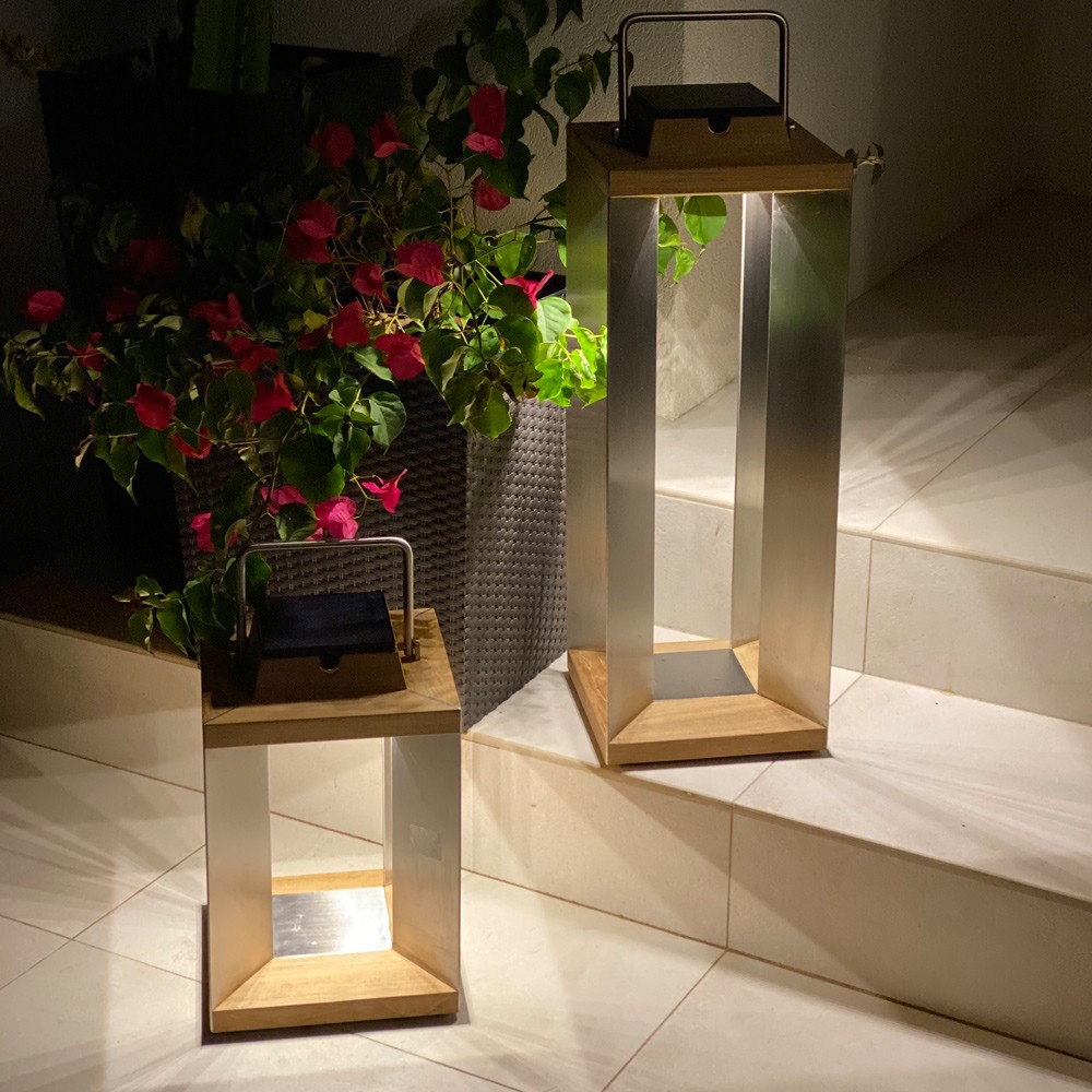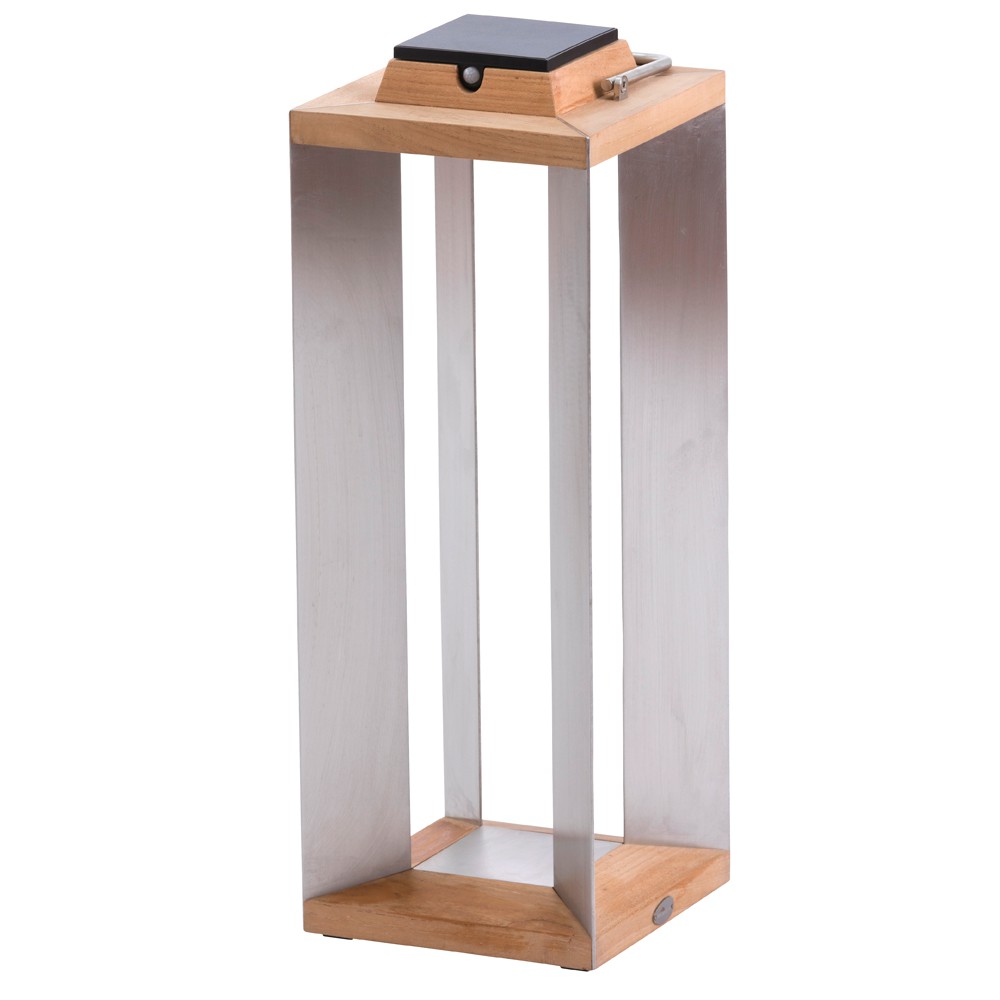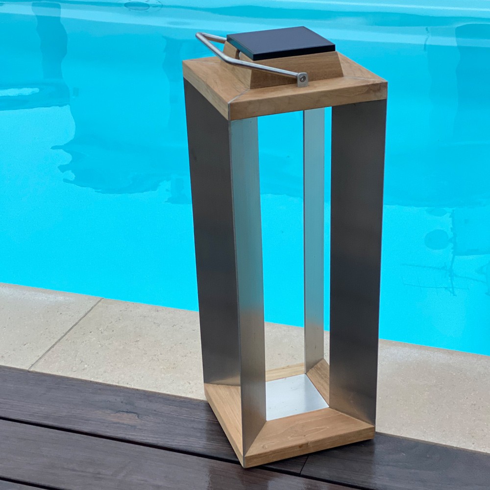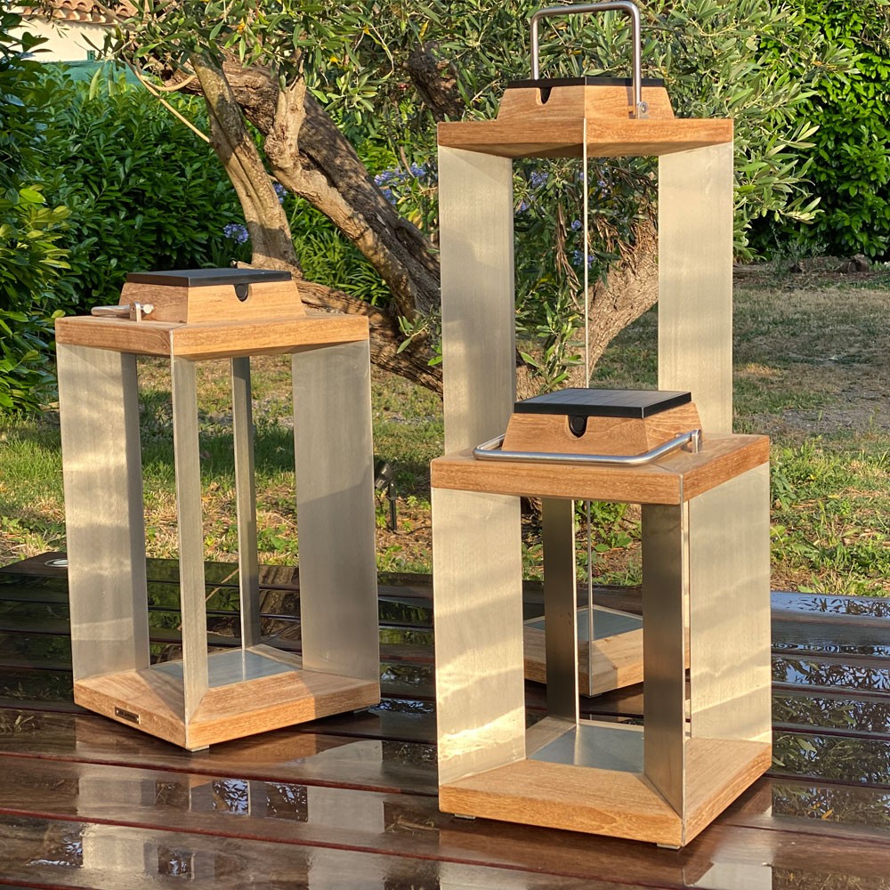 Conçue en France, esthétique et robuste cette magnifique lanterne solaire en Teck et inox illuminera votre jardin à la tombée de la nuit.