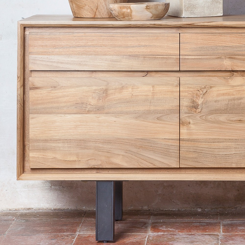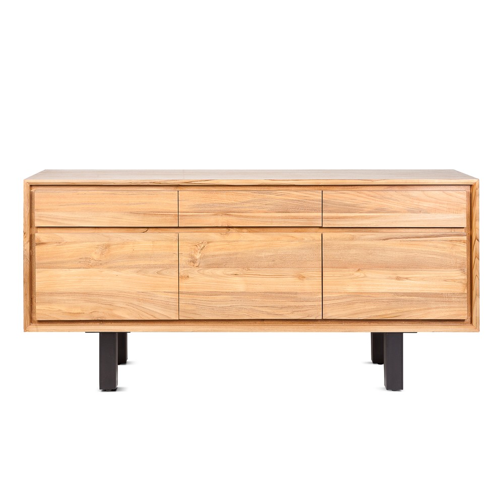 Le buffet LOX séduit par ses lignes élégantes et son aspect rustique. Ce meuble fait en bois de teck naturel recyclé est robuste, écologique et allie charme et authenticité de l’ancien. Grâce à ses 3 tiroirs et 3 portes offre une belle surface de rangement optimisée. Vaisselle et objets du quotidien y seront très bien gardés !