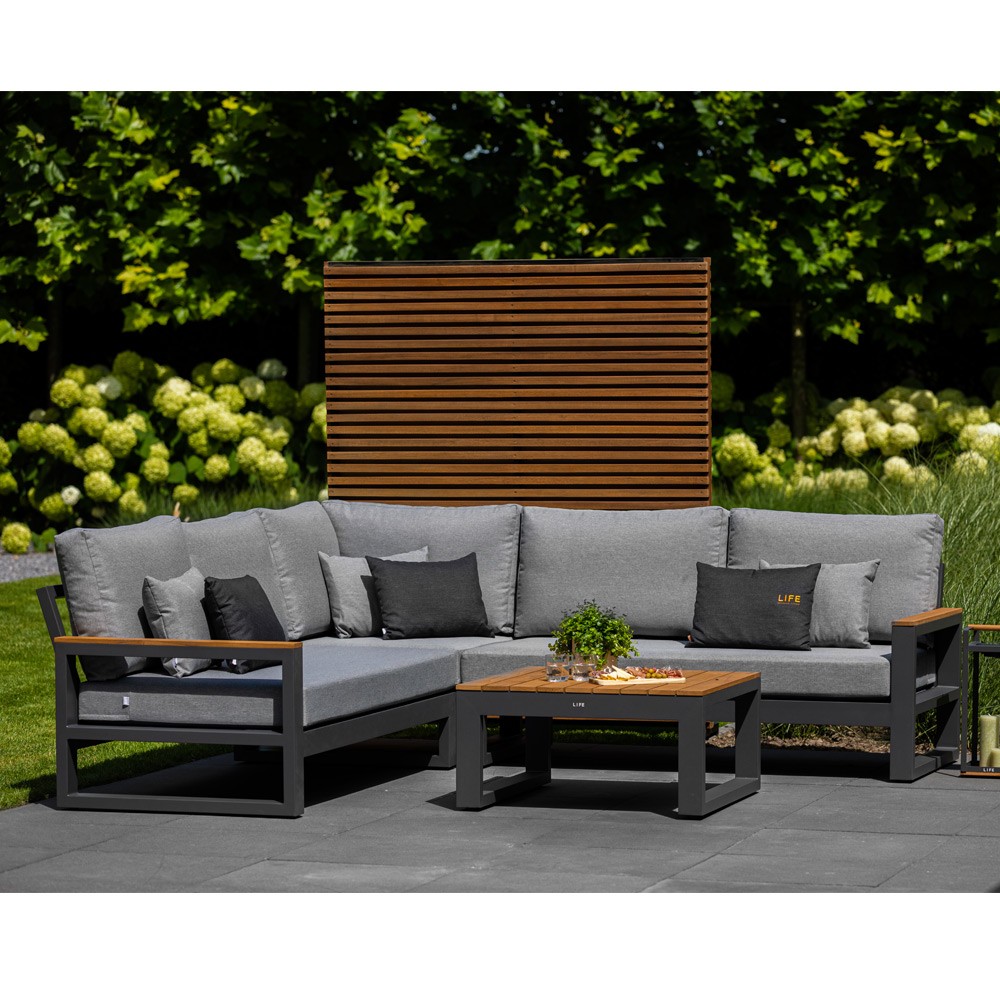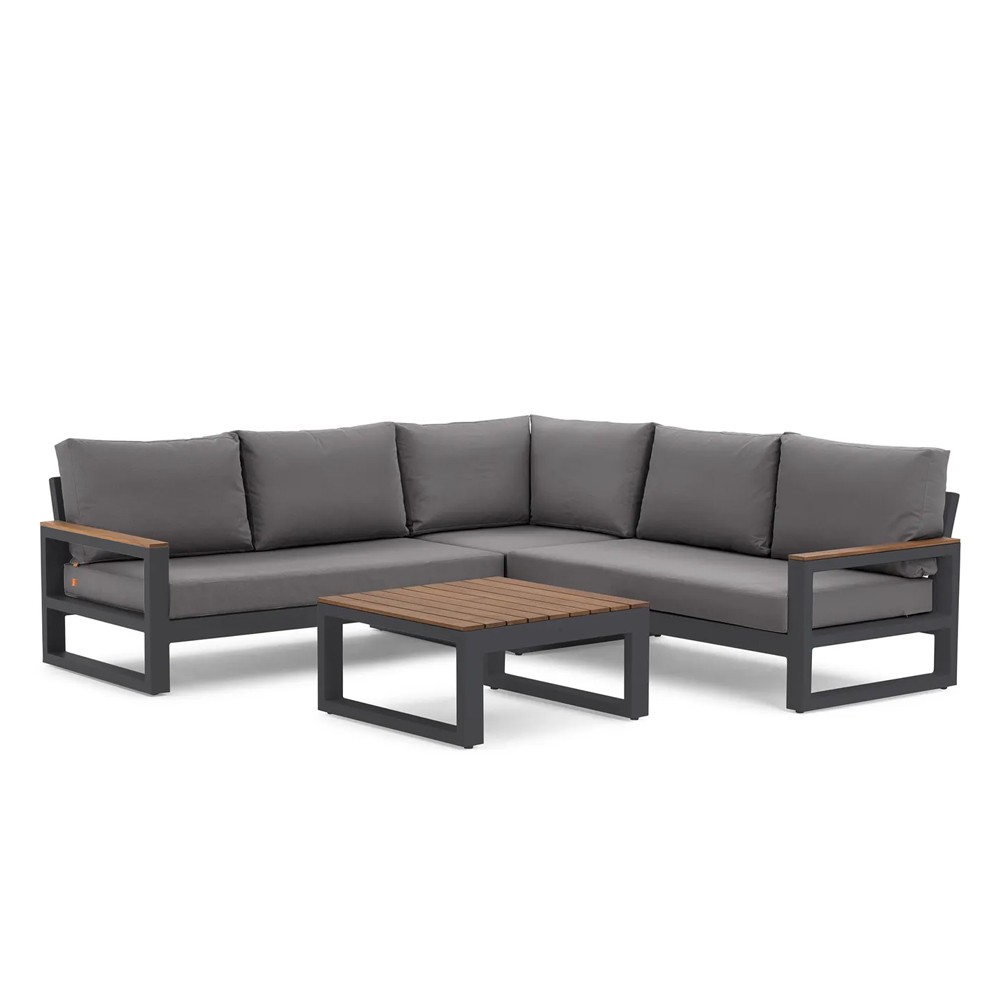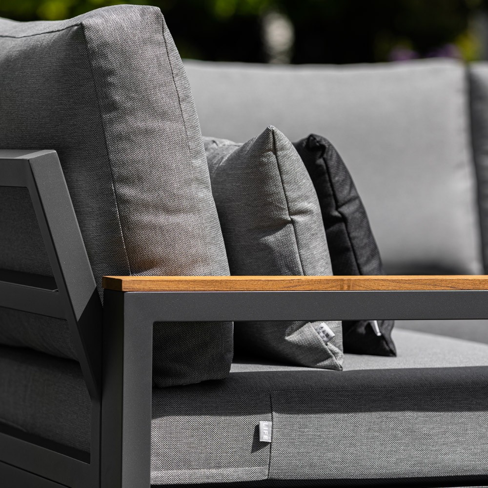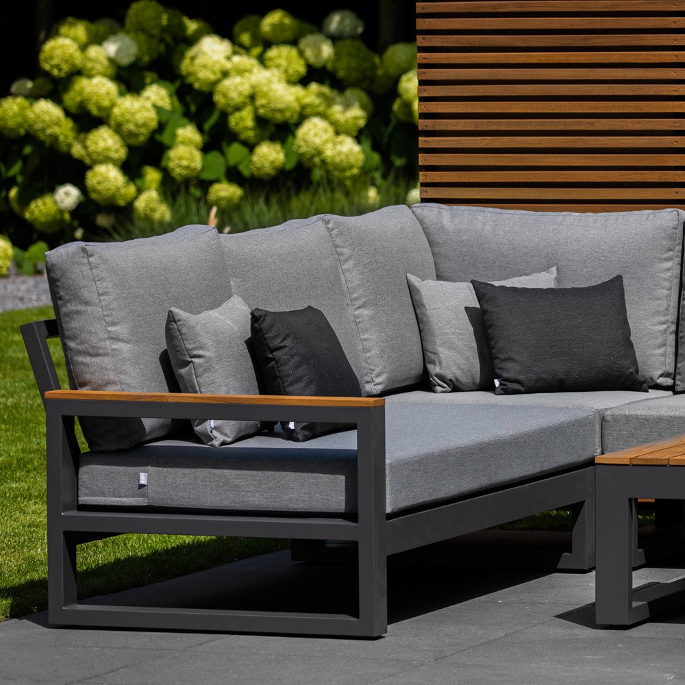 Le salon de jardin SOHO MISTGREY, à la fois confortable et moderne, convient parfaitement aux espaces extérieurs. Avec sa structure en aluminium gris et ses accoudoirs en teck qui ajoutent une touche chaleureuse, cet ensemble moderne est très résistant. Les coussins à la fois épais et moelleux aux allures contemporaines, complètent l’ensemble pour un confort optimal. Pouvant accueillir jusqu’à 5 personnes, le salon de jardin SOHO créé un véritable espace de convivialité, de plus son assise généreuse et profonde ravira vos convives.