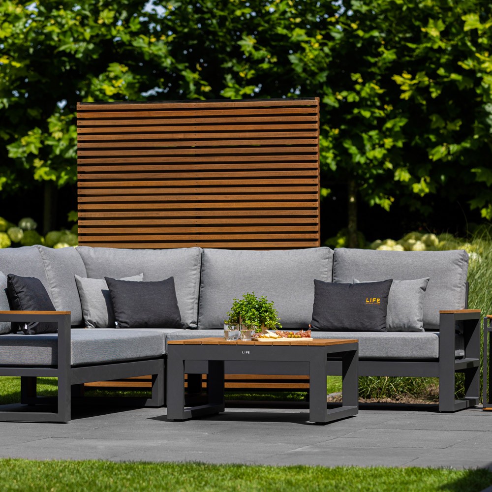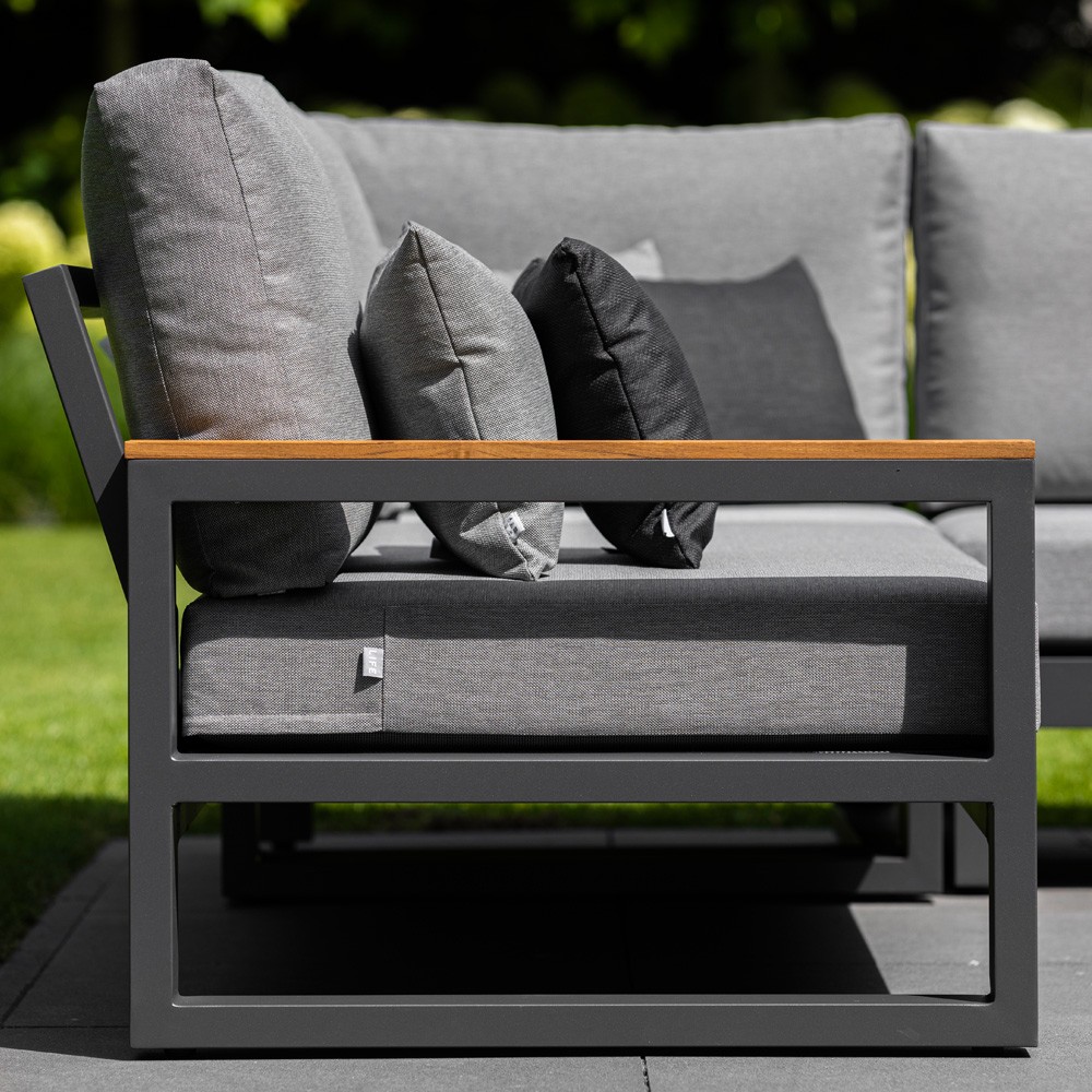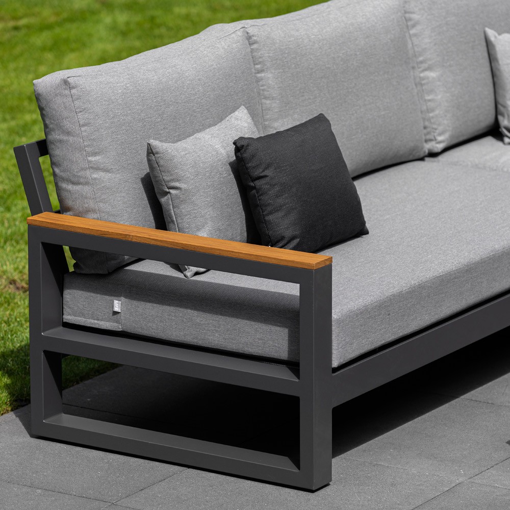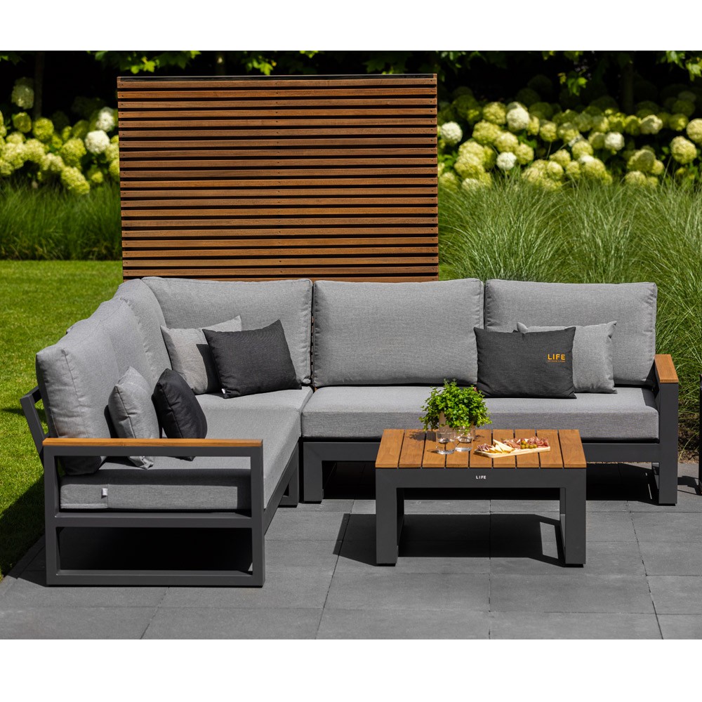 Le salon de jardin SOHO MISTGREY, à la fois confortable et moderne, convient parfaitement aux espaces extérieurs. Avec sa structure en aluminium gris et ses accoudoirs en teck qui ajoutent une touche chaleureuse, cet ensemble moderne est très résistant. Les coussins à la fois épais et moelleux aux allures contemporaines, complètent l’ensemble pour un confort optimal. Pouvant accueillir jusqu’à 5 personnes, le salon de jardin SOHO créé un véritable espace de convivialité, de plus son assise généreuse et profonde ravira vos convives.