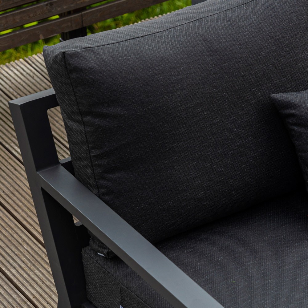 Les matières de ce salon ont été conçues pour résister à toutes les intempéries. Les coussins se nettoient sans difficulté, sèchent rapidement, et résistent aux rayons UV.