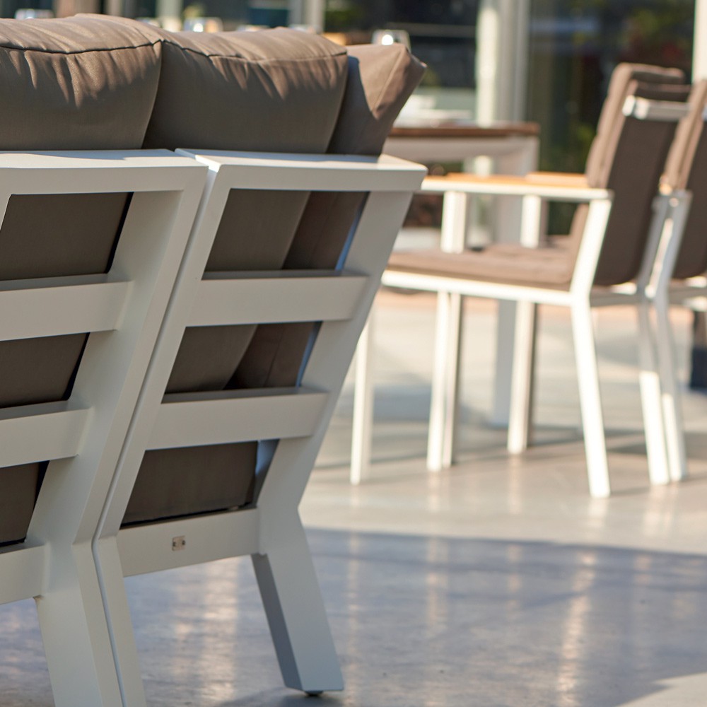 Les coussins d’assise et de dossier ALL WEATHER qui sont inclus dans l’ensemble, sont résistants aux intempéries et faciles d'entretien.