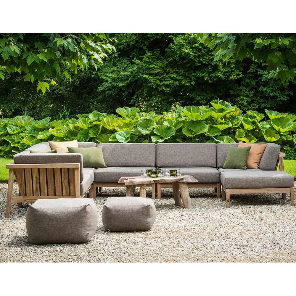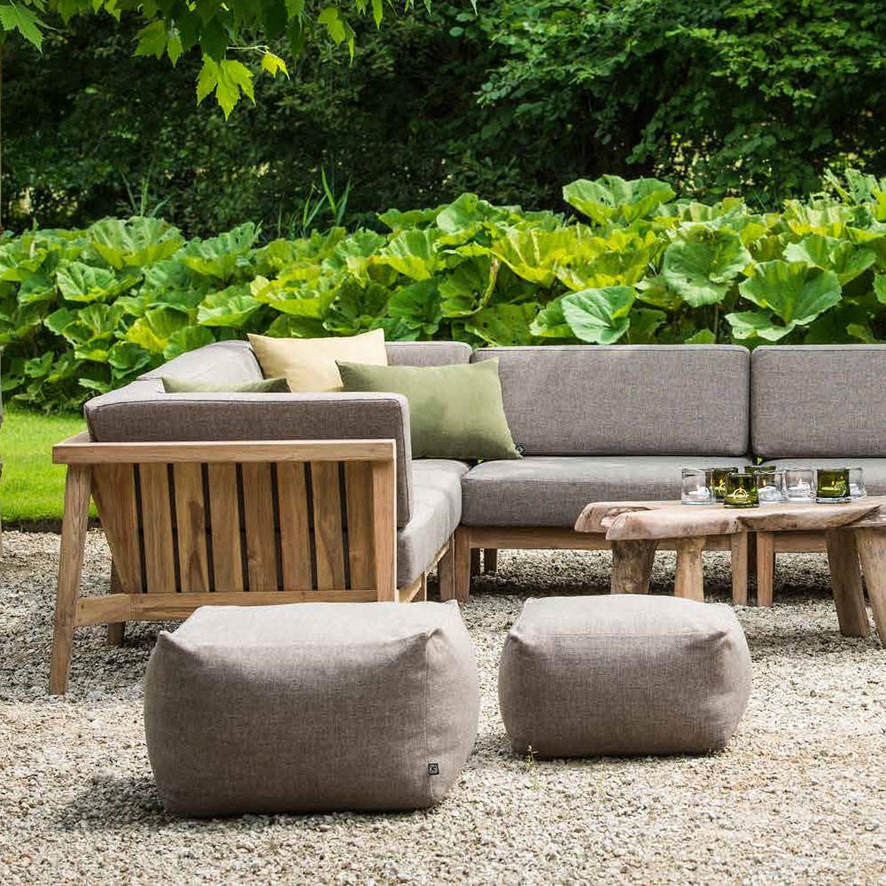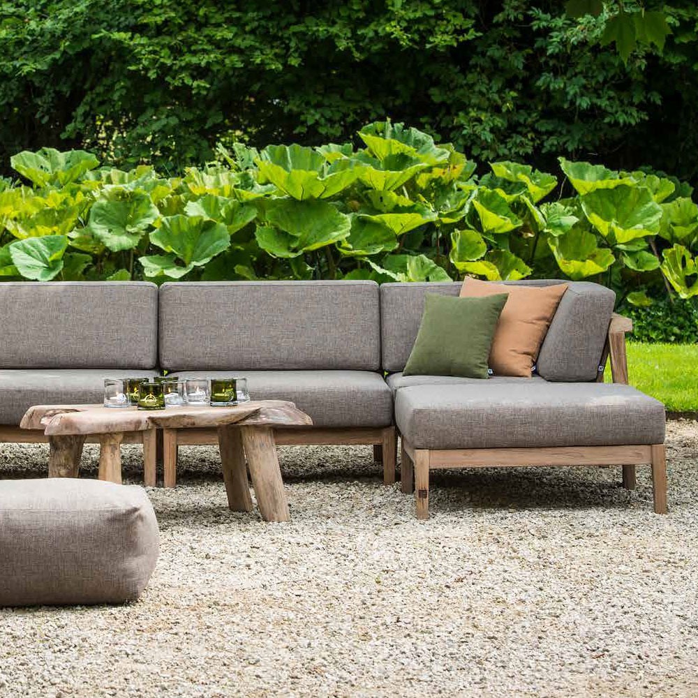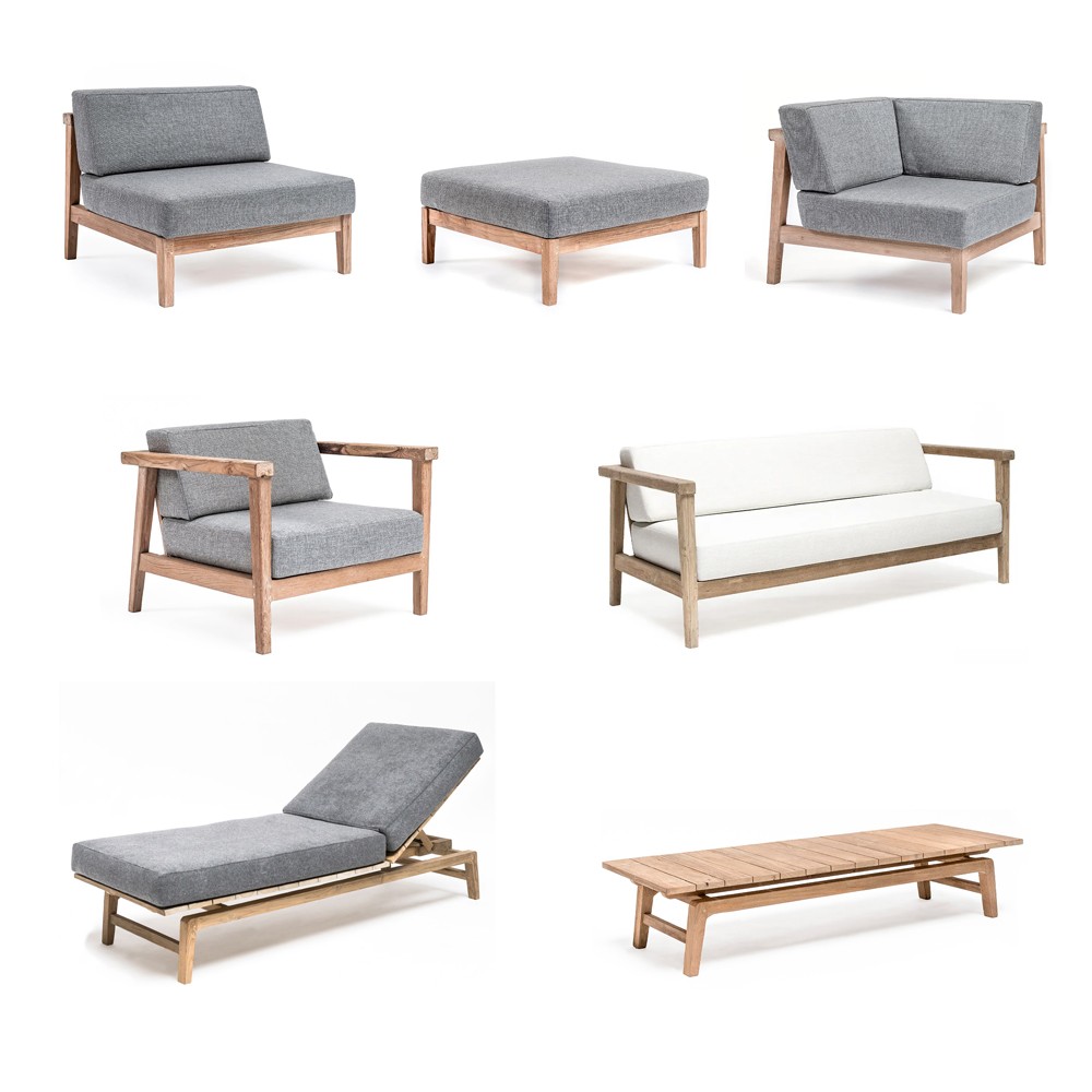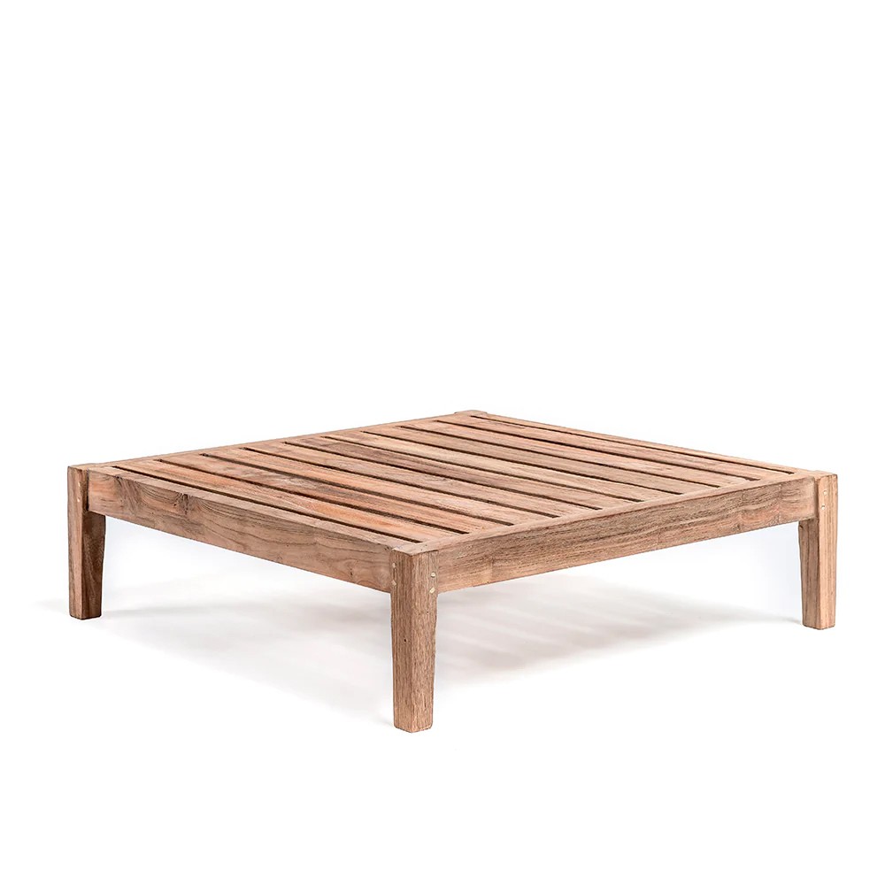 - Structure et table basse : Bois de teck recyclé, récupéré sur de vieilles charpentes de constructions, de bateaux ou de trains. Ce teck qui peut être centenaire est témoin d’une époque où l’on ne coupait que les plus beaux spécimens et nous murmure des histoires anciennes tout en gardant un style absolument contemporain.
