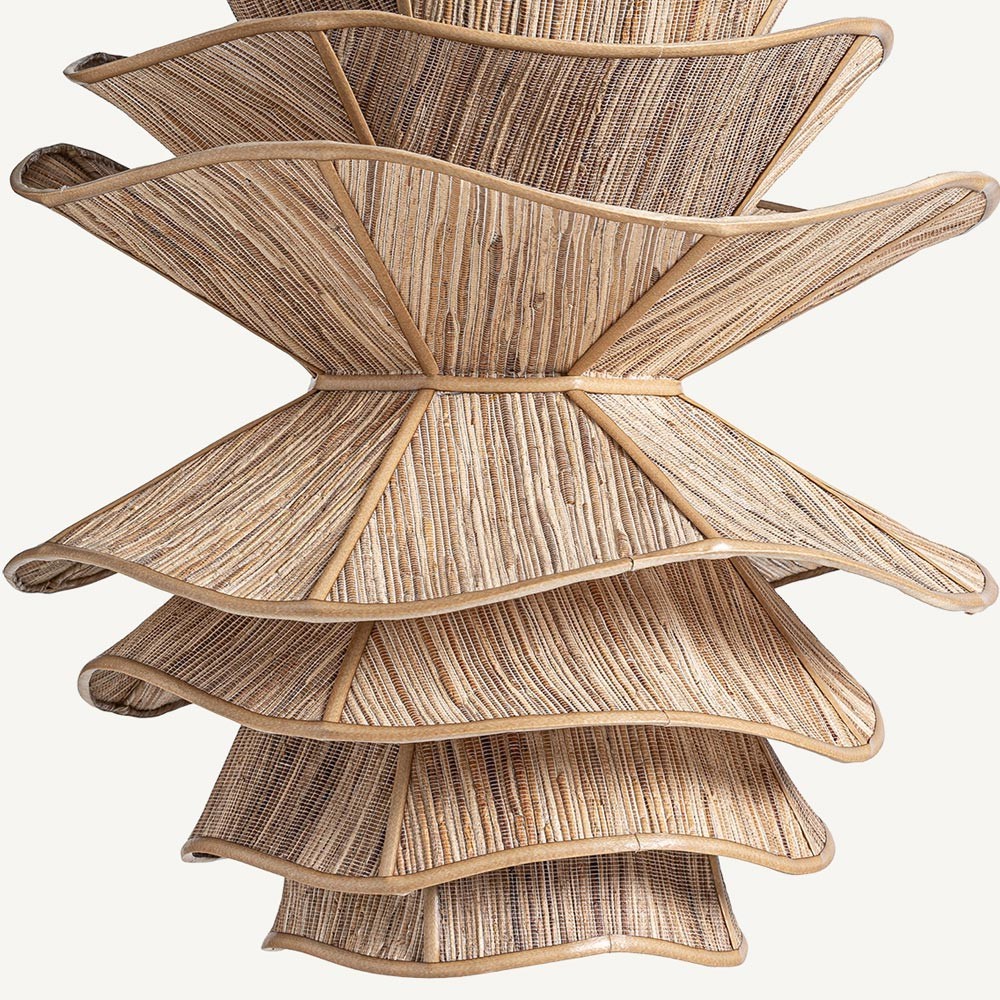 Suspendu dans votre intérieur, le PALMIRA devient une véritable œuvre d’art, une pièce qui transforme l’espace en un lieu de sérénité et de raffinement. Ses nuances brunes, profondément ancrées dans la matière naturelle du cocotier, captent la lumière pour la diffuser avec douceur, créant une atmosphère apaisante, presque mystique.