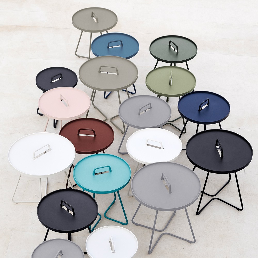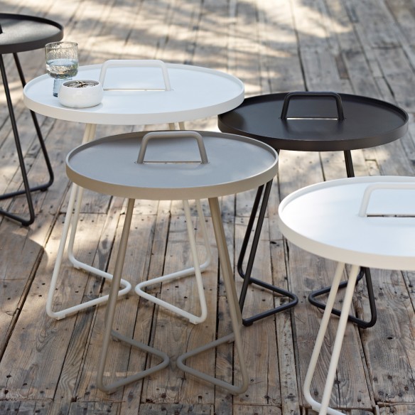 Élégante et légère, la table d’appoint On The Move est également fonctionnelle. Dotée d’une poignée, vous pourrez la déplacer aisément au gré de vos envies, et elle trouvera son utilité autant à l’extérieur qu’à l’intérieur. De plus son plateau est amovible, de quoi faciliter le transport de vos boissons et apéritifs. La table est en aluminium thermolaqué, elle est donc parfaitement adaptée pour l’extérieur. Pour minimiser le nettoyage et garder l'aspect général du produit pendant de nombreuses années, il est conseillé de la stocker à l'intérieur durant l'hiver.