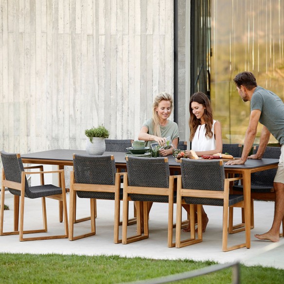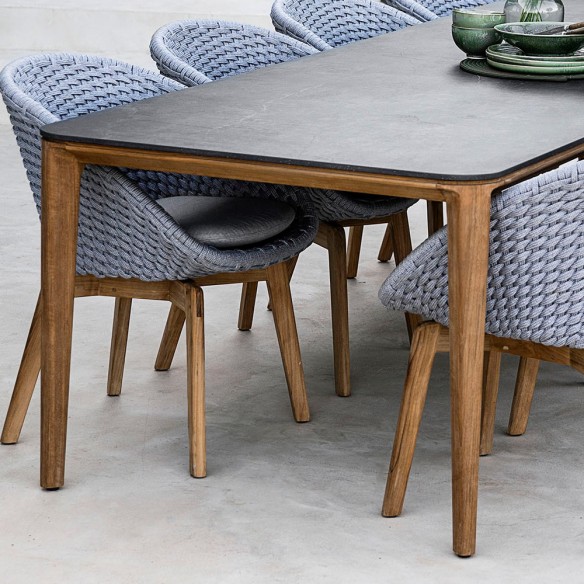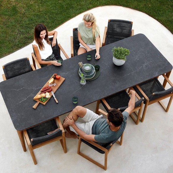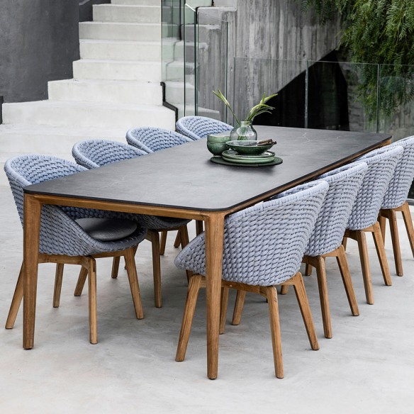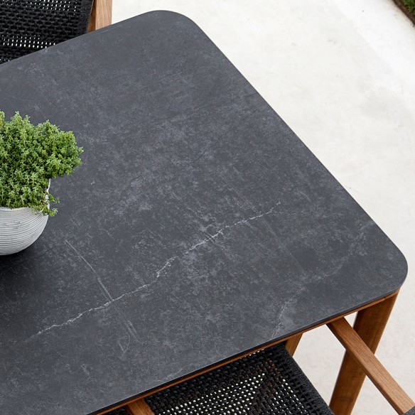 Sublimez votre terrasse avec la table Aspect. Dotée d’une structure en aluminium, d’un cadre naturel en teck et d’un plateau en céramique style “ardoise”, la table Aspect ne laissera pas indifférent vos invités.