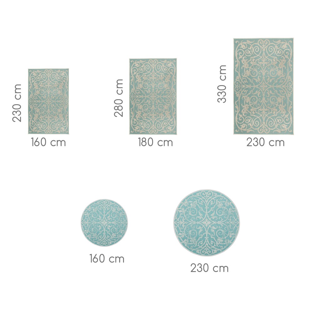 Doté d'un design traditionnel avec d'élégants motifs floraux, le tapis Summer Quai rond apporte de la sophistication à tout espace, que ce soit à l'intérieur ou à l’extérieur sur votre terrasse. La palette de couleurs turquoises et naturelles ajoute une touche de sobriété, vous permettant d’accorder ce tapis avec du mobilier de tout style. Conçu à partir de polypropylène renforcé, le tapis Summer Quai turquoise est durable et résistant aux intempéries.