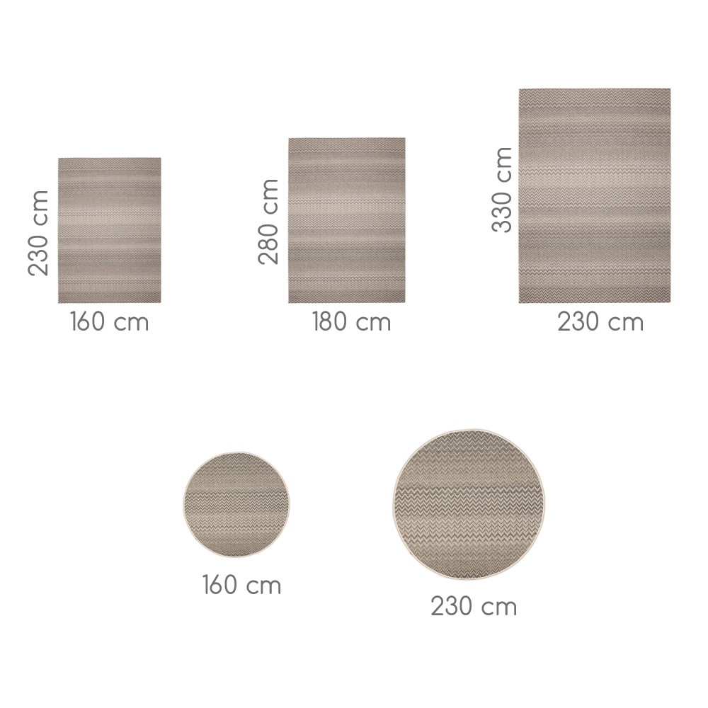 Sublimez votre terrasse grâce au tapis d'extérieur rond Ziggy, en anthracite et beige. Tissé à partir de polypropylène renforcé, il séduit avec son motif à chevrons, et apporte une touche dynamique et moderne à votre espace. Le tapis offre une grande résistance aux intempéries, et sera ainsi parfaitement adapté autant à votre extérieur qu’à l’intérieur.